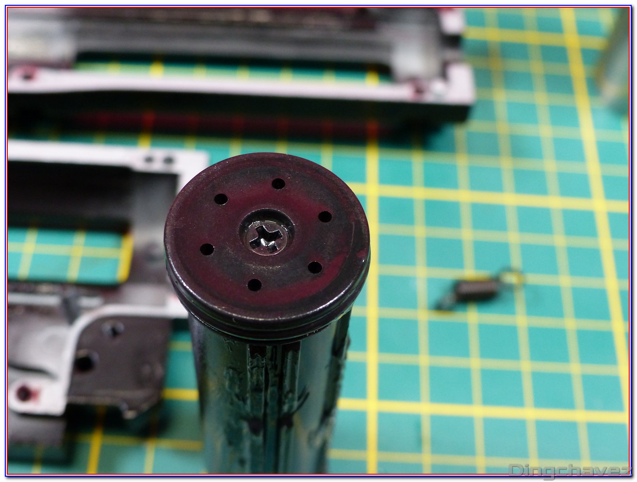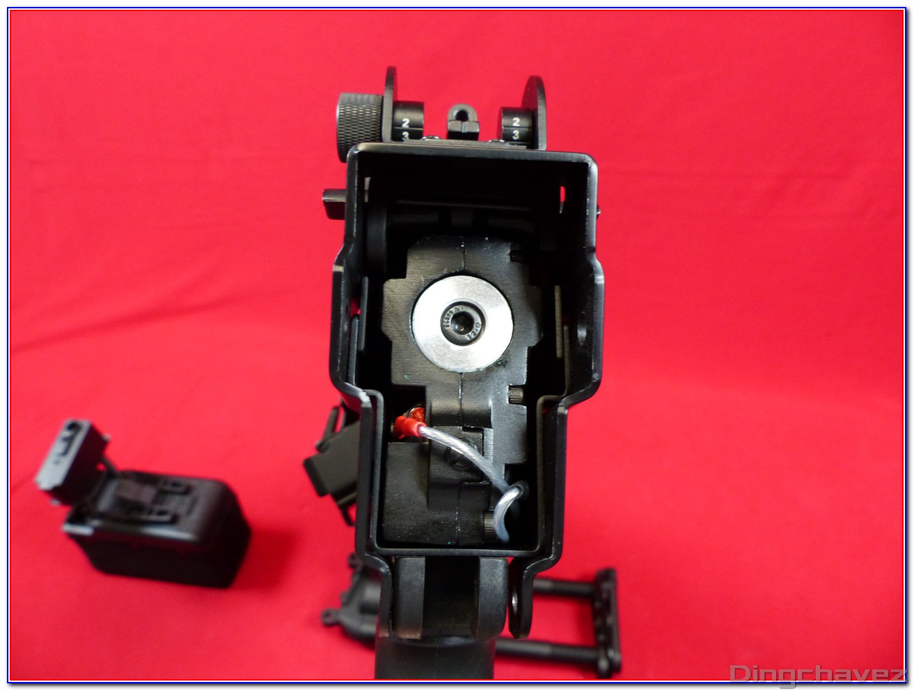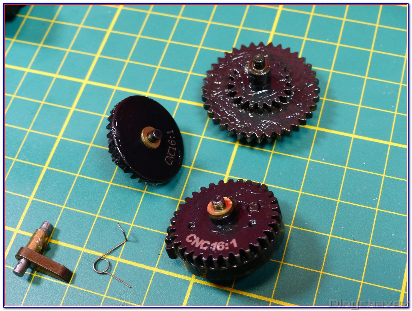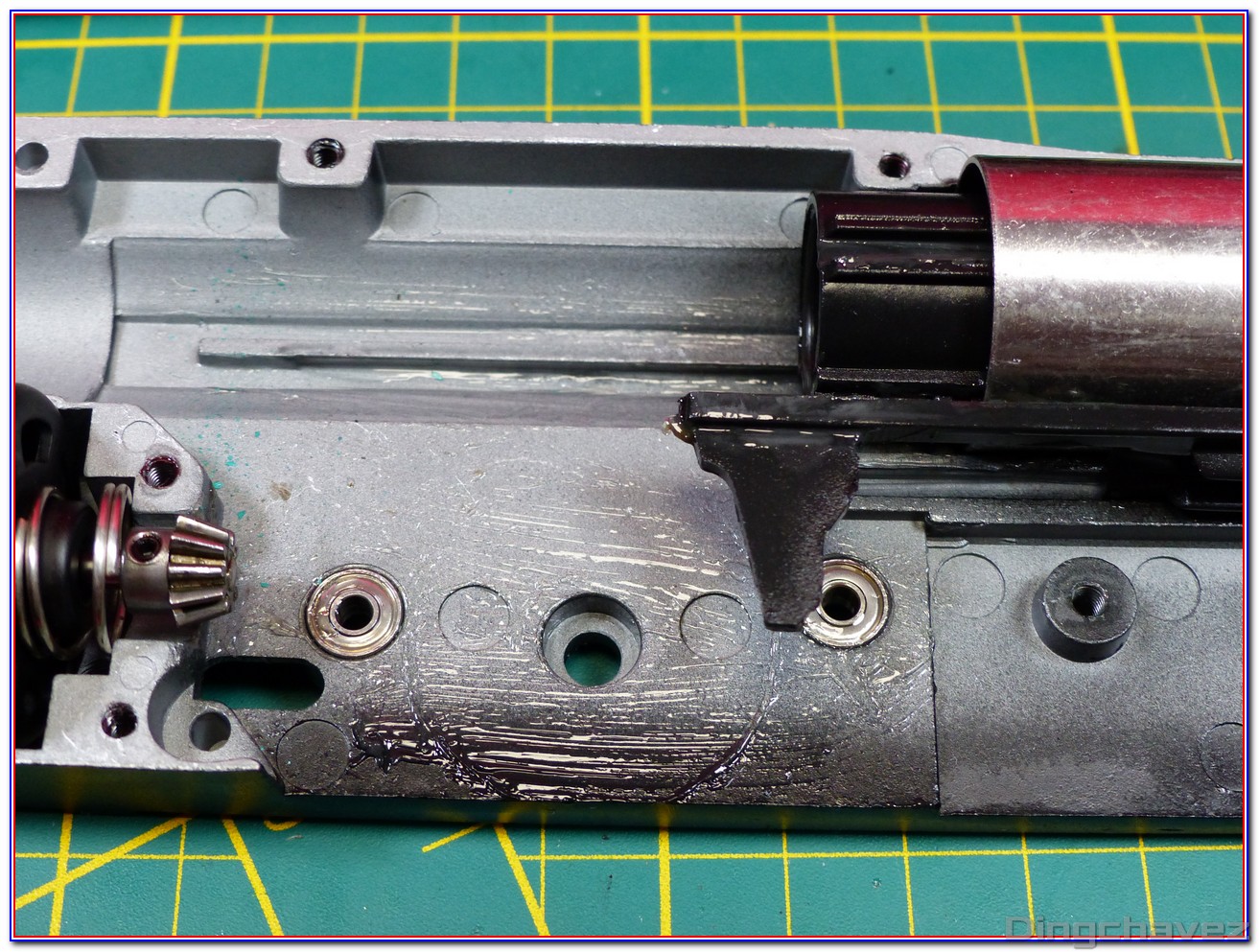 Cela découvre la grosse gearbox et donne accès au bloc hop-up et sa molette d’ajustement.