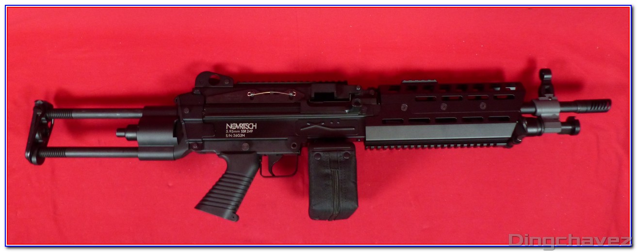 Et voilà notre SSR249. Elle est lourde et massive ! En cause ? Le corps est en acier embouti. Il faudra être motivé pour se trimballer les 7 kilos de cette lmg.