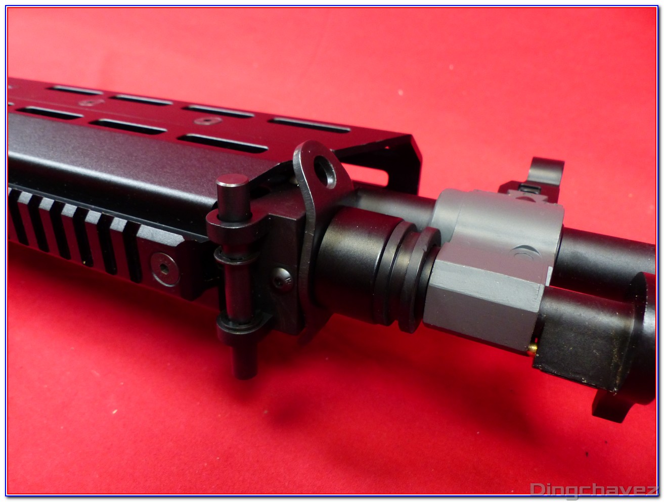 Le canon externe est en aluminium usiné par CNC. Le profil de la pièce d’accroche a été modifié et une pièce en acier prend place à l’arrière du canon.