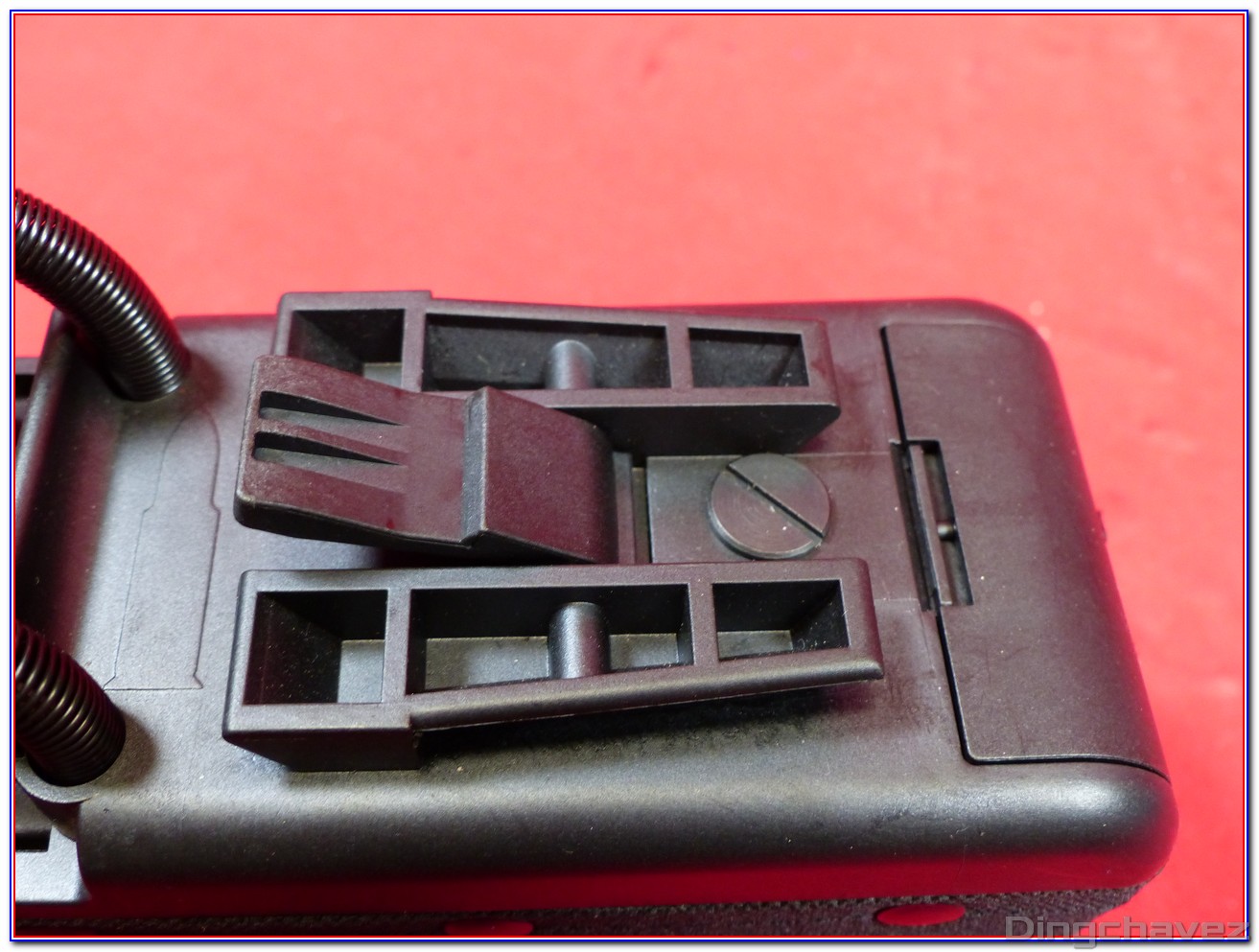 Commençons par jeter un œil au changement rapide du ressort. On actionne le loquet sur le dessus de la gearbox, on retient le guide et il peut sortir.