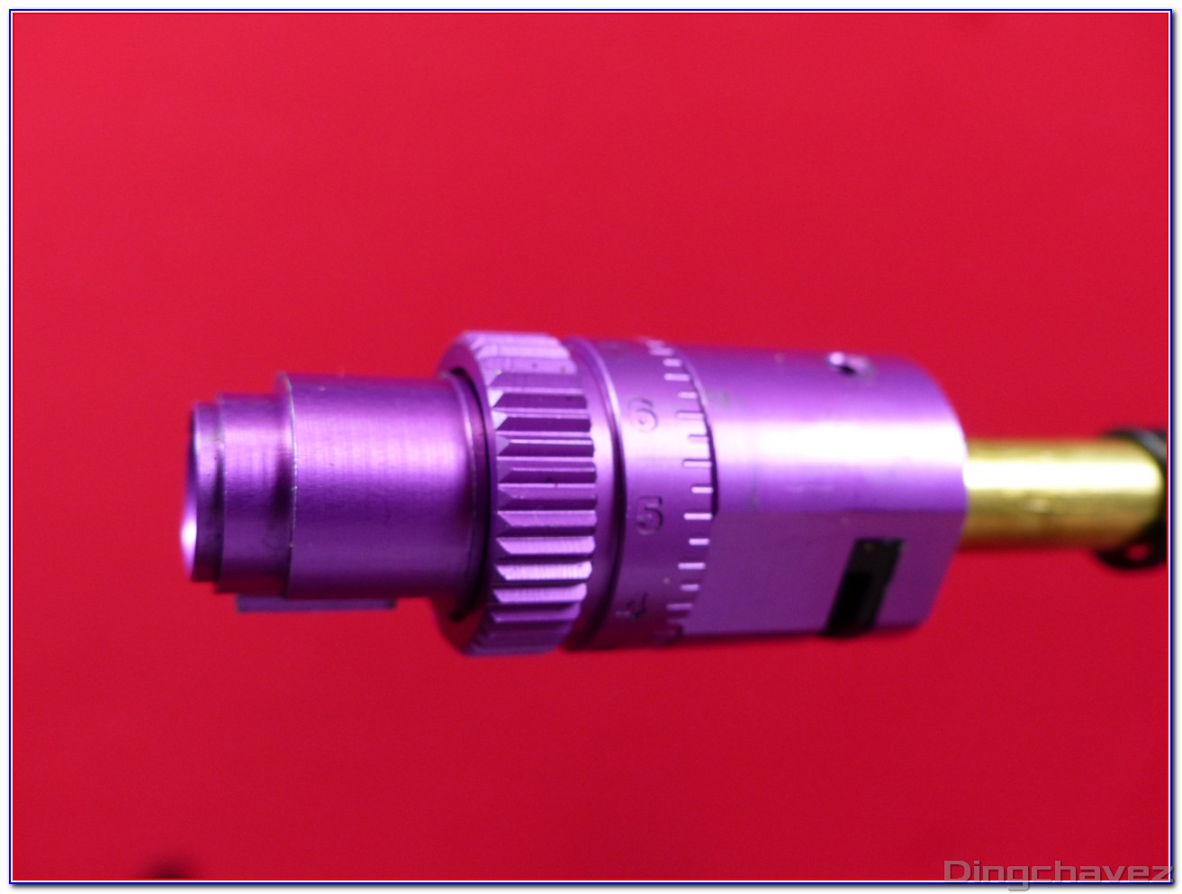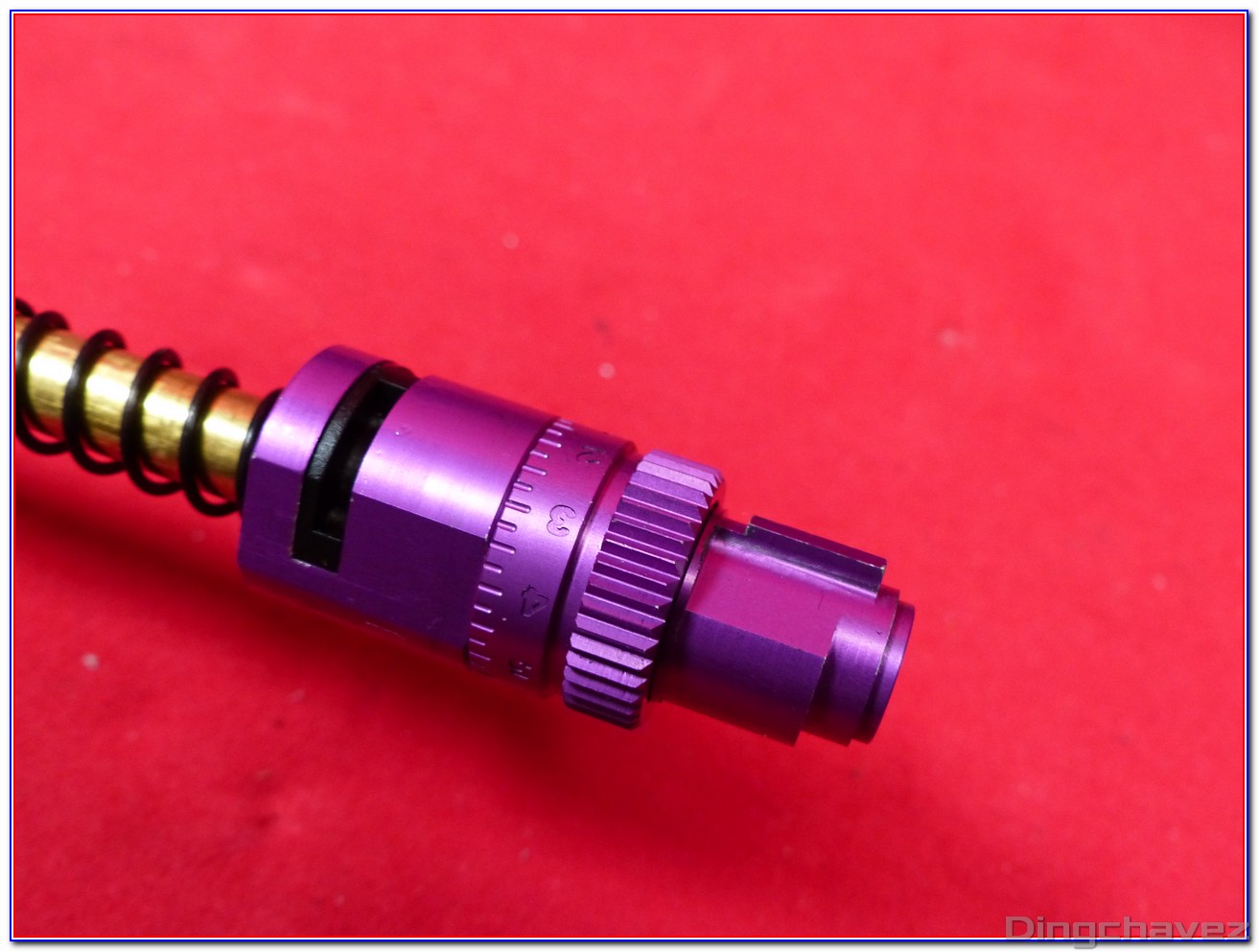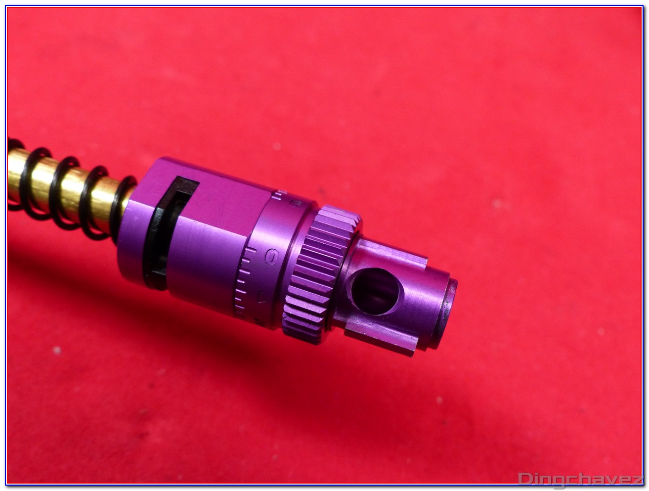 Le bloc hop-up est en aluminium usiné par CNC puis anodisé. Sa mollette est bien ferme et comporte des graduations.