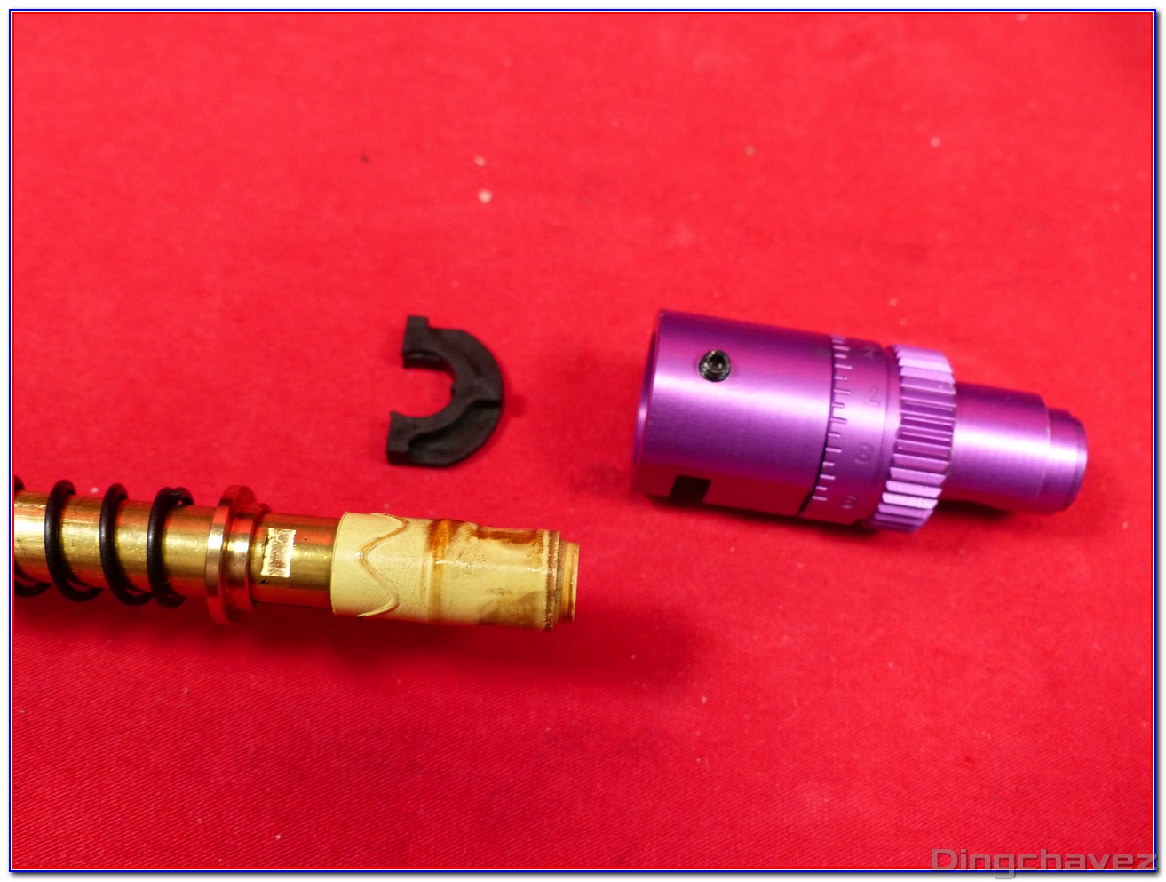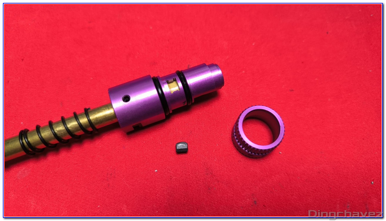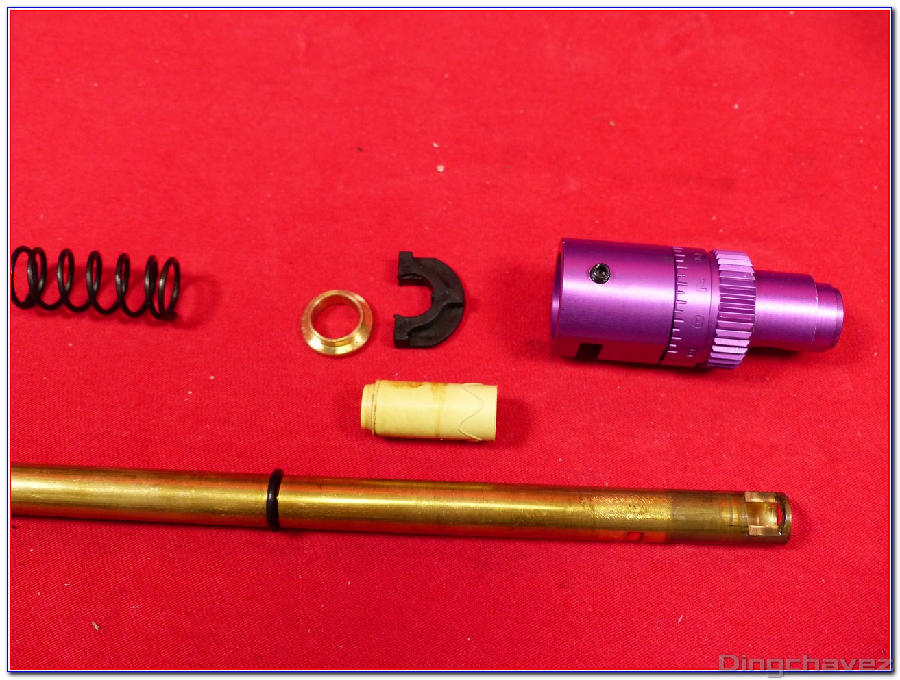 Nous pouvons désormais retirer le canon interne. Deux petits joints toriques servent de barrel spacers pour caler le canon interne dans le canon externe.