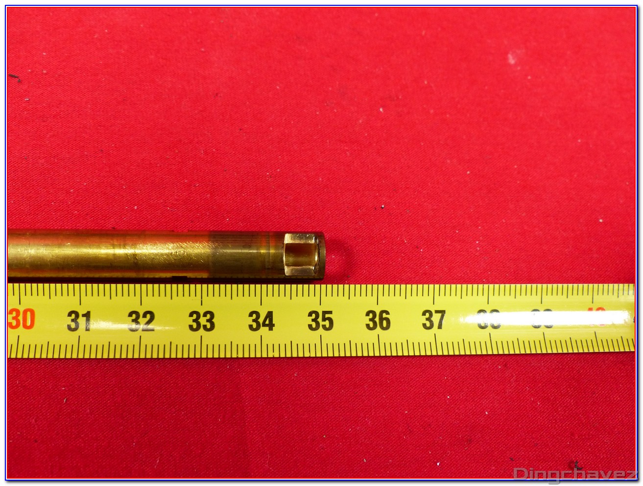 Le canon est également en laiton. Il mesure 350 mm pour un diamètre interne de 6.04 mm.