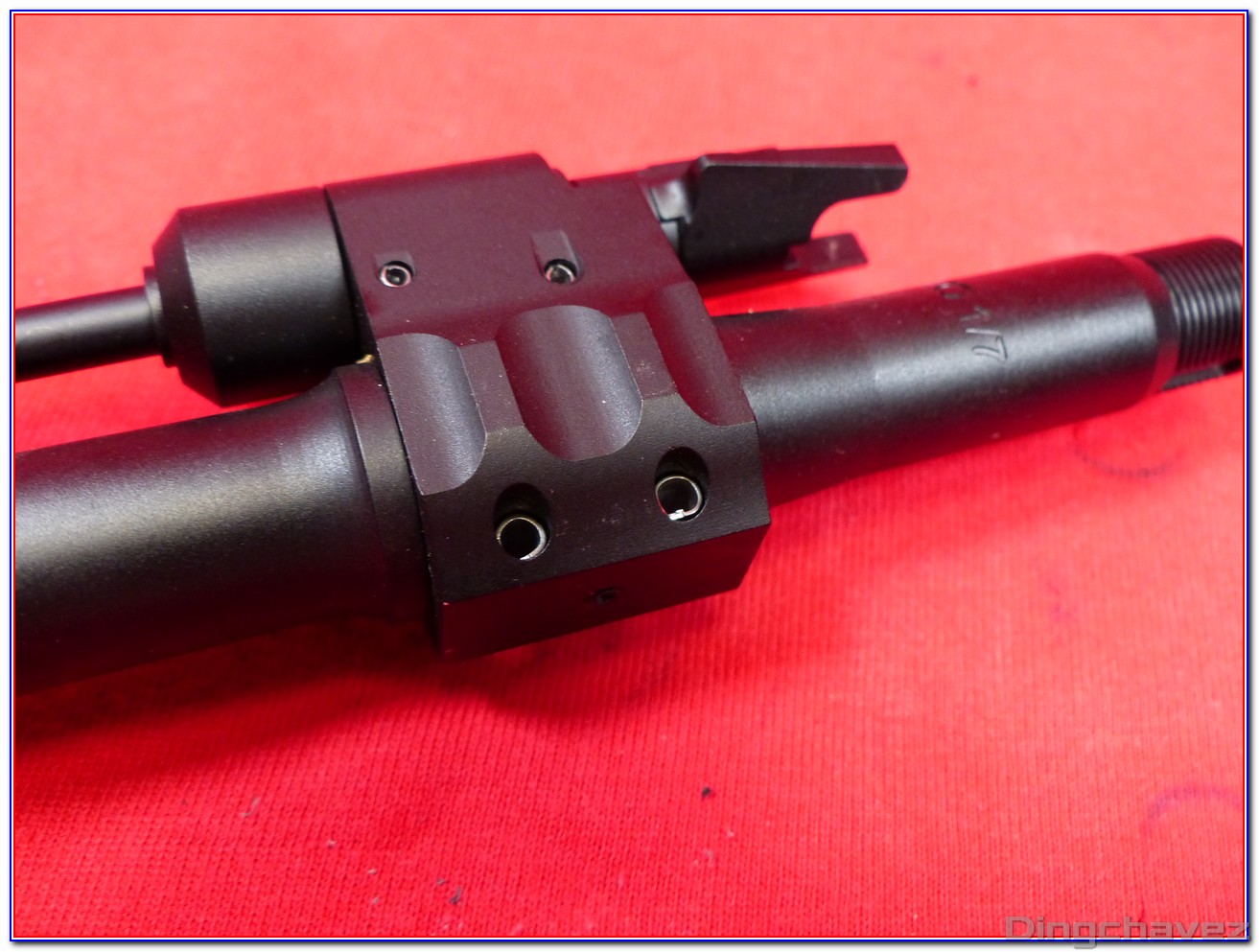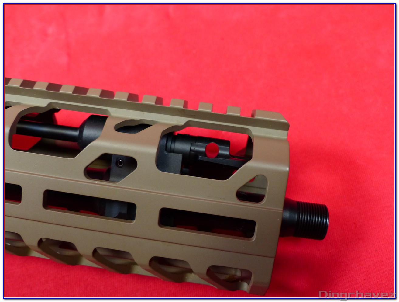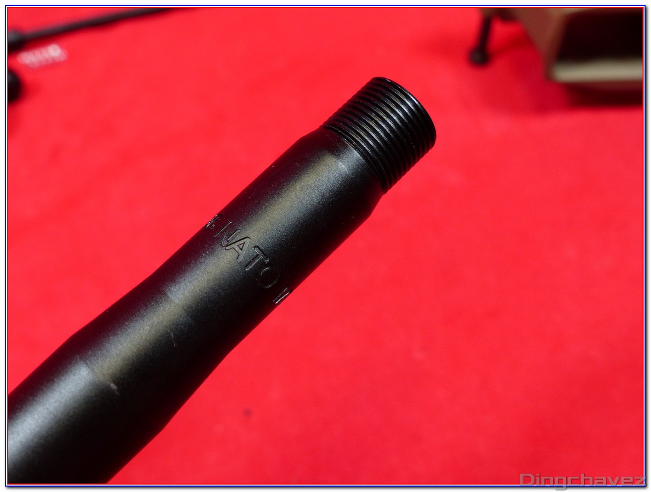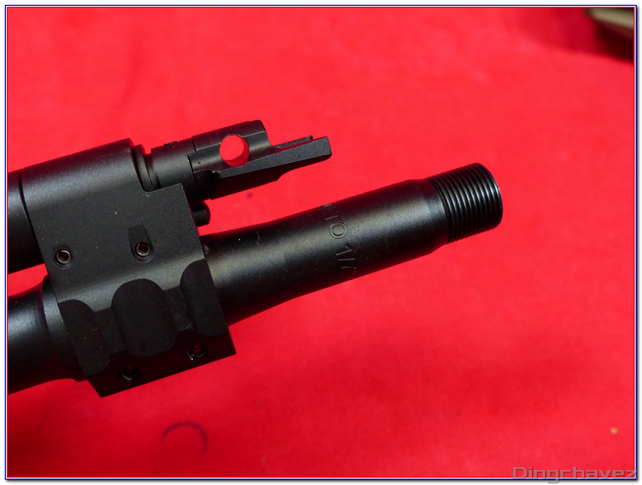 On découvre également des marquages sur le canon externe. 5.56 NATO et le pas de rayures 1/7.