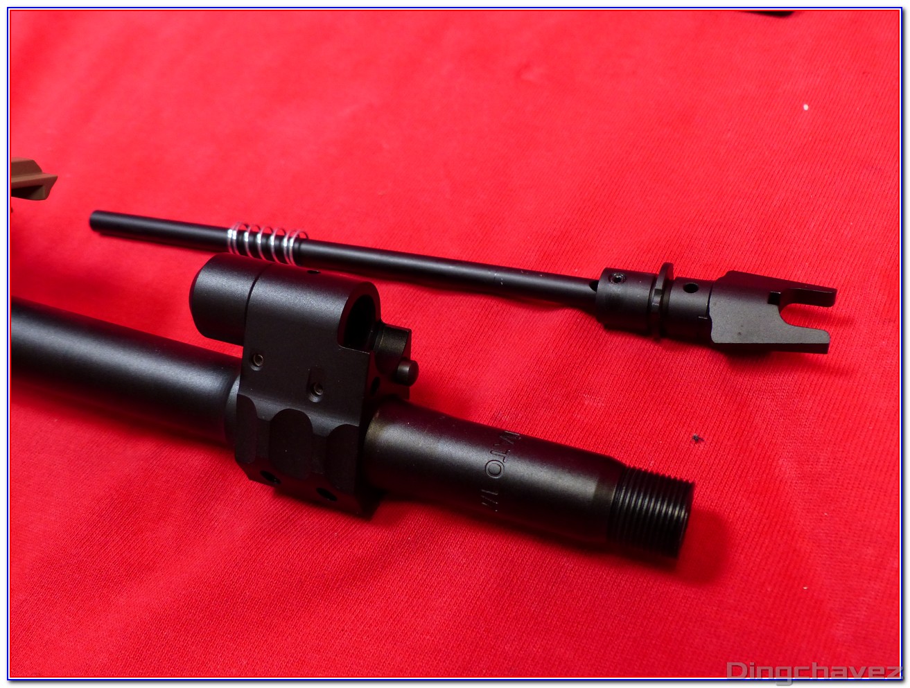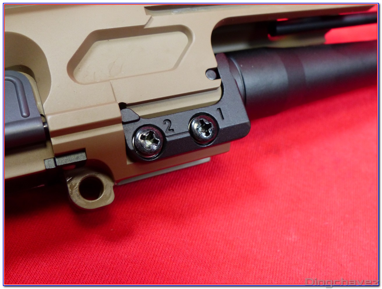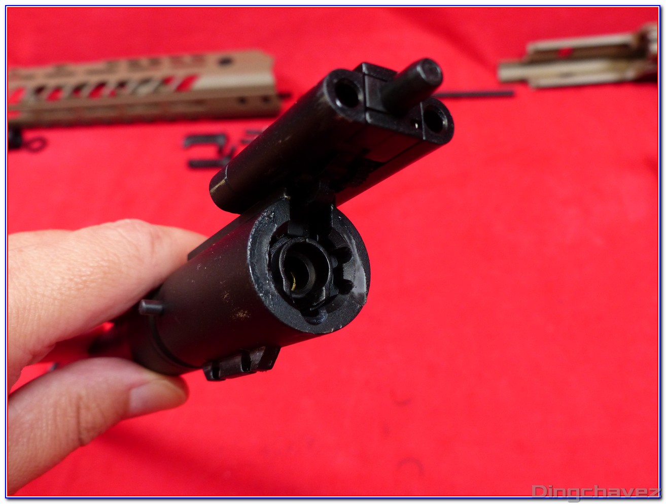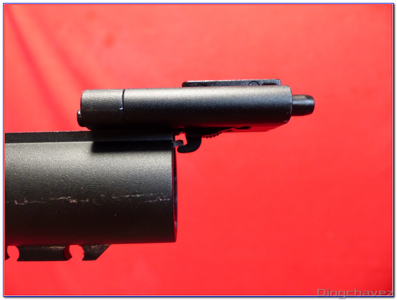 On découvre également des marquages sur le canon externe. 5.56 NATO et le pas de rayures 1/7.