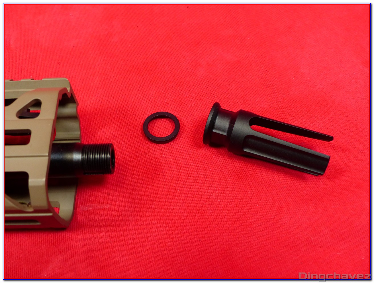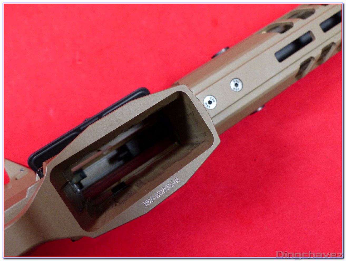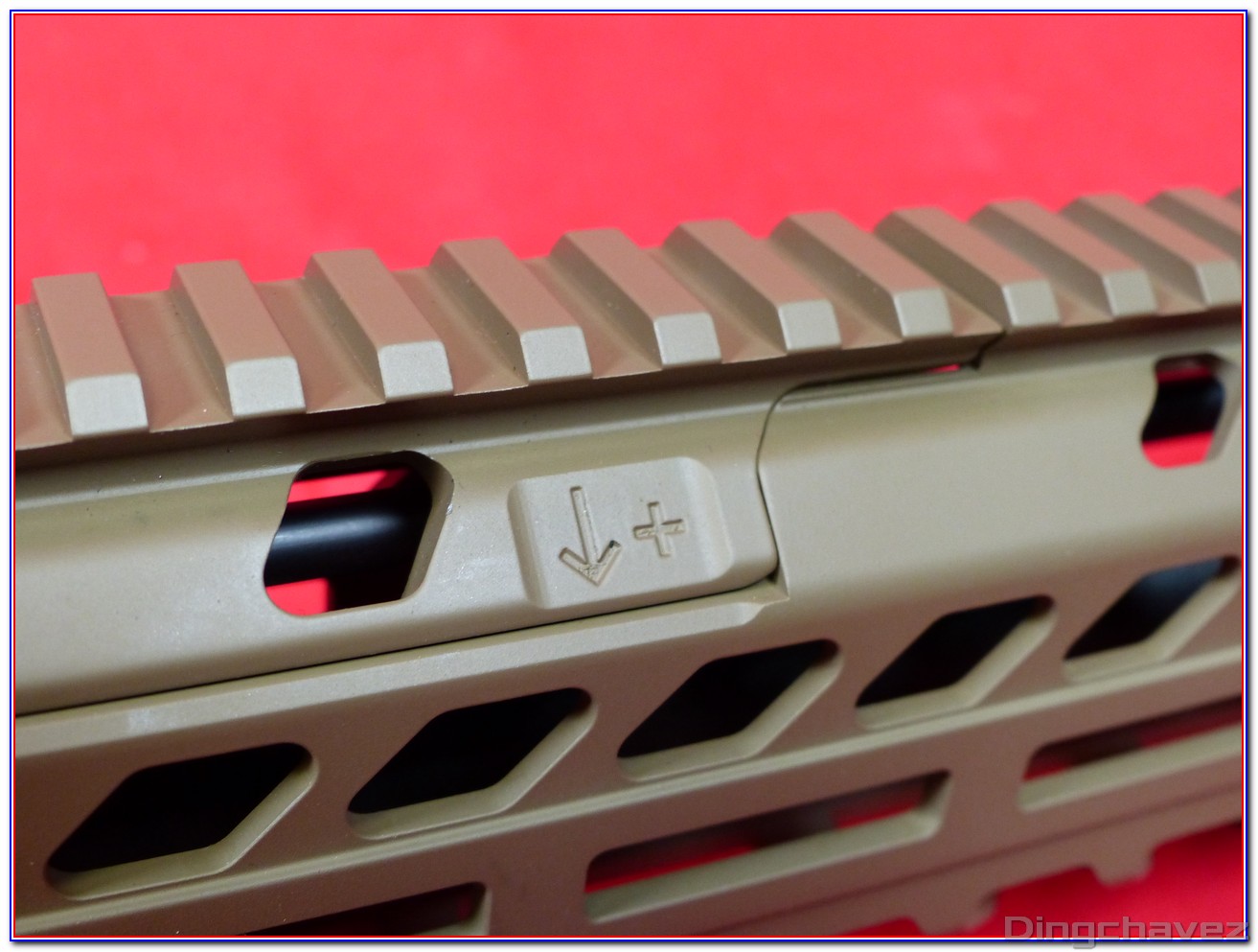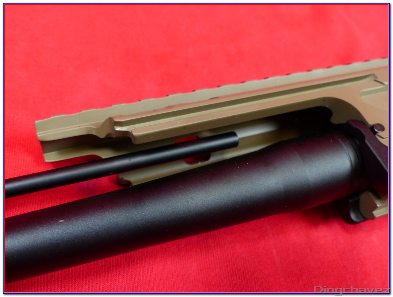 On découvre également des marquages sur le canon externe. 5.56 NATO et le pas de rayures 1/7.