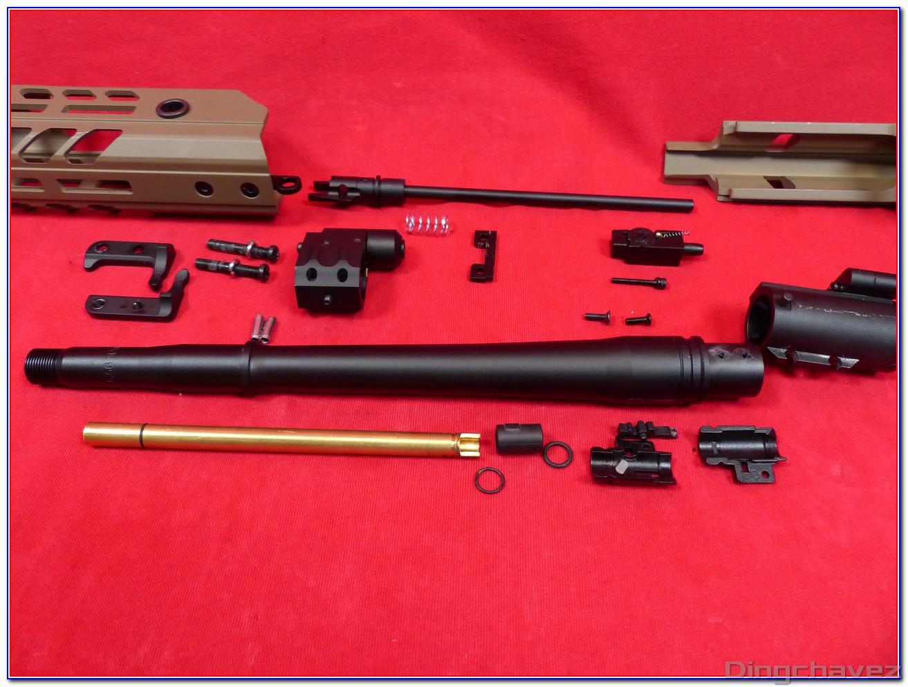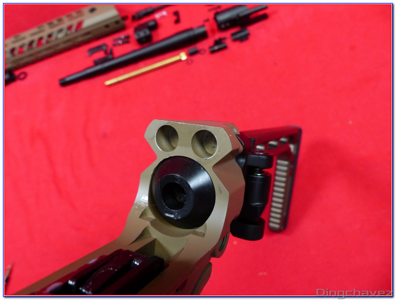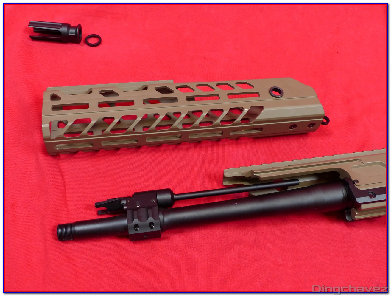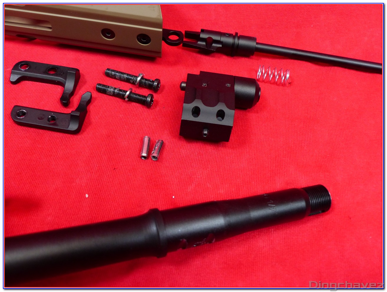 On découvre également des marquages sur le canon externe. 5.56 NATO et le pas de rayures 1/7.