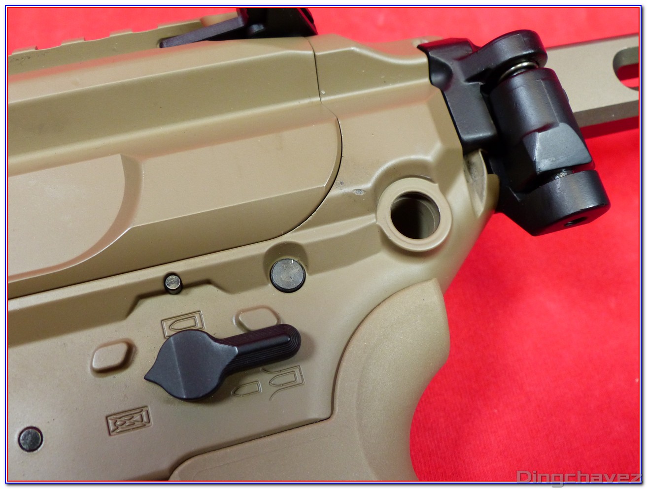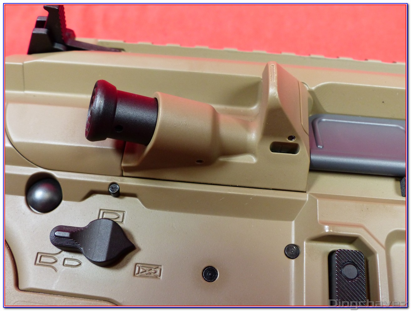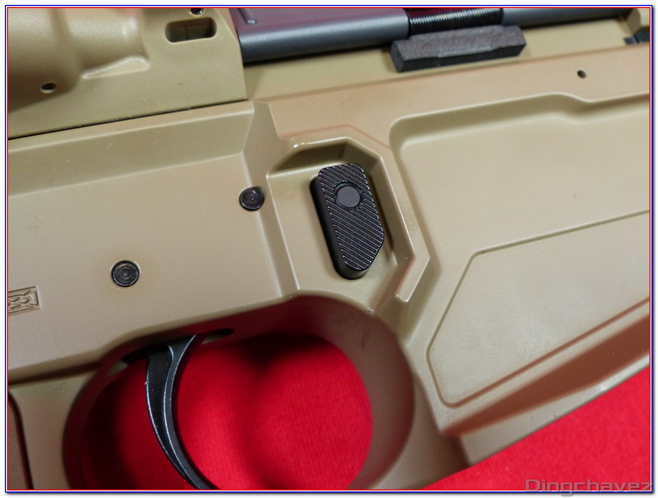 L’arrêtoir de l’ensemble mobile (bolt catch/release) est fonctionnel. Il permet de bloquer le BC en arrière en fin de chargeur.