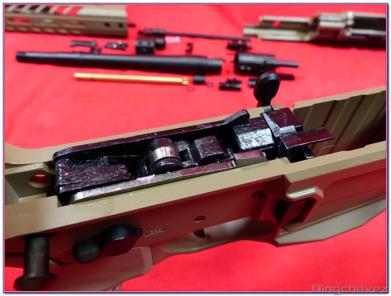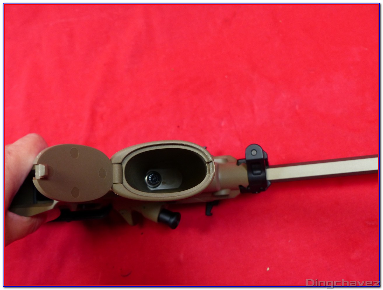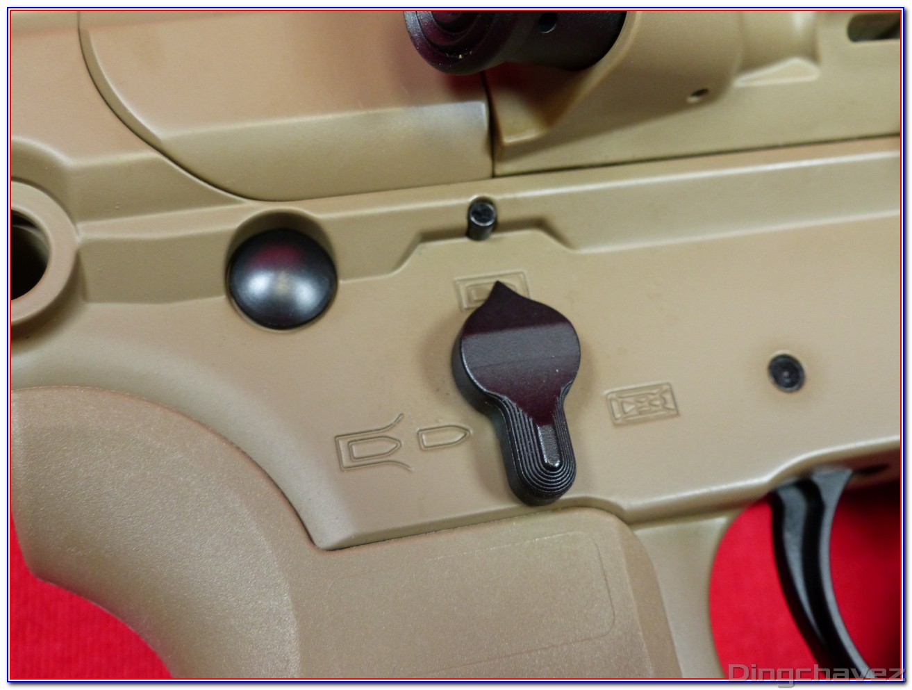 L’arrêtoir de l’ensemble mobile (bolt catch/release) est fonctionnel. Il permet de bloquer le BC en arrière en fin de chargeur.