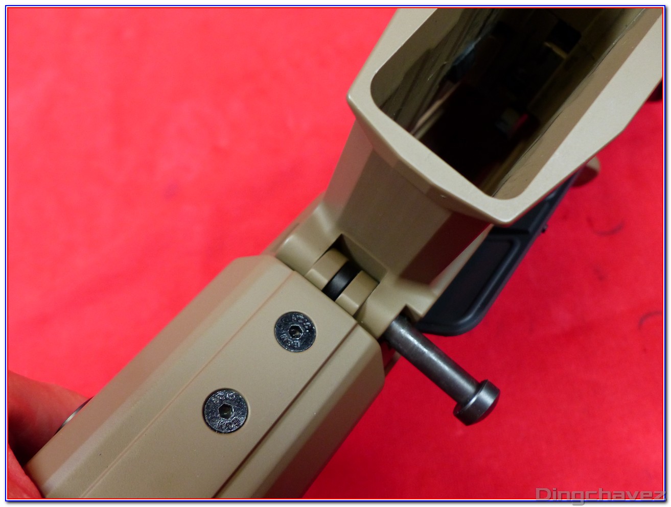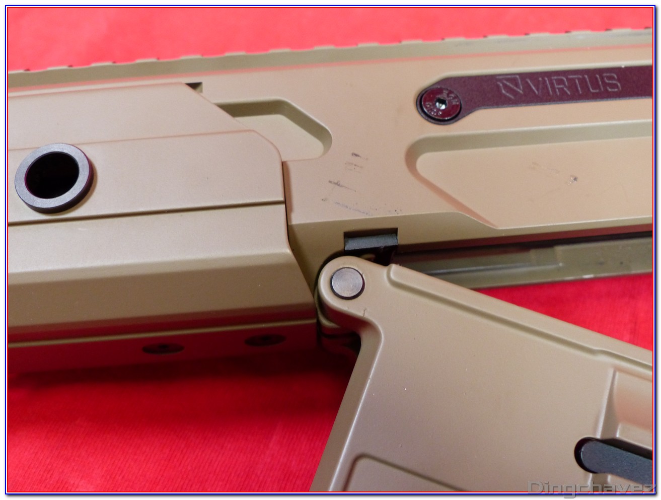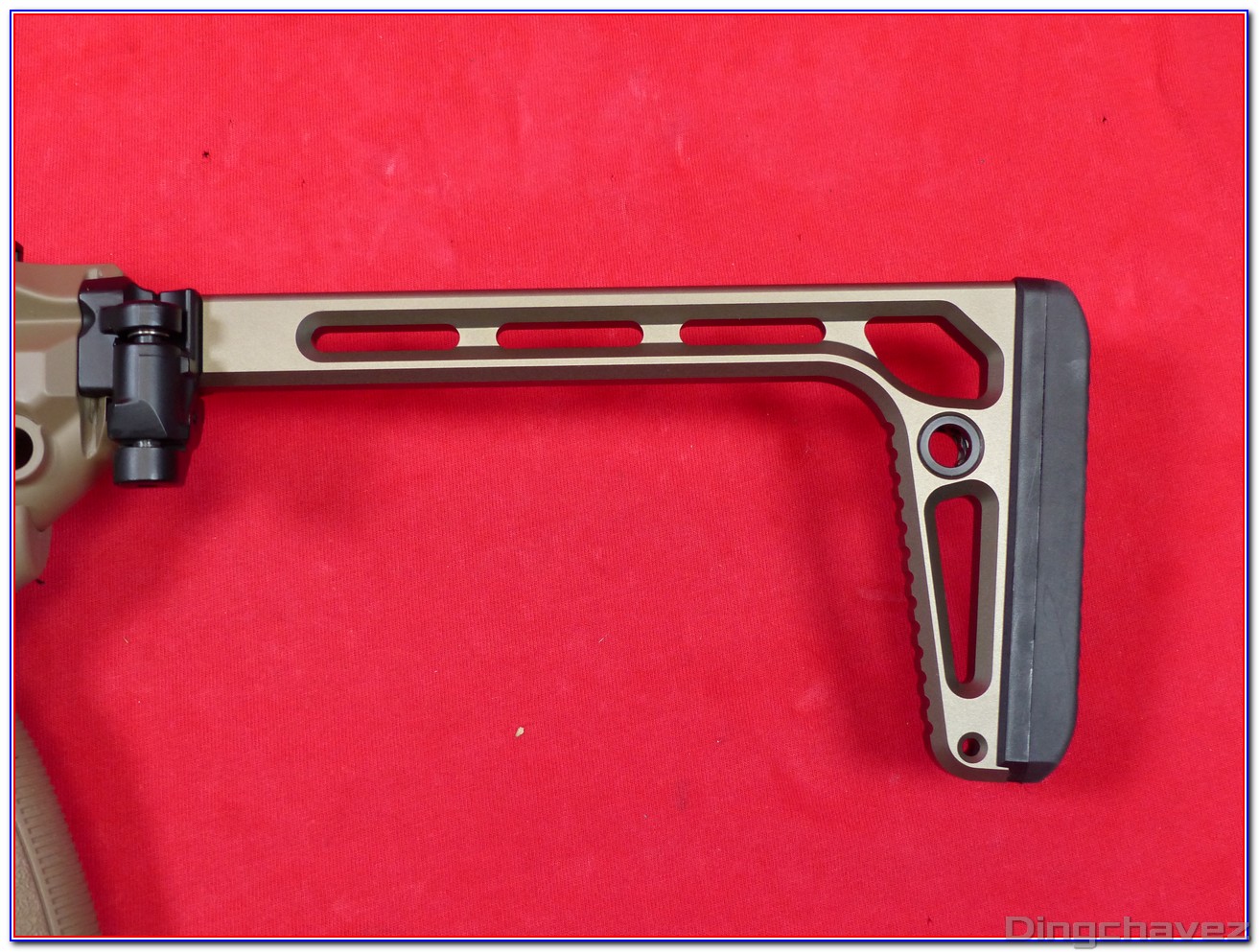 Une fois installée, la crosse peut être repliée côté gauche de la réplique. On peut tirer et actionner les contrôles avec la crosse repliée.