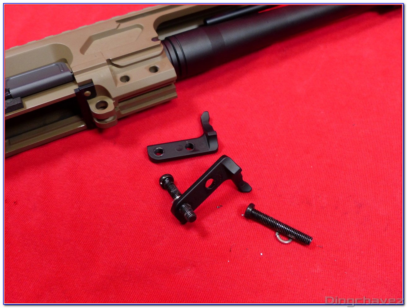 Ici, l’extension de percuteur (valve knocker extension) et la patte du système d’arrêt de tir.