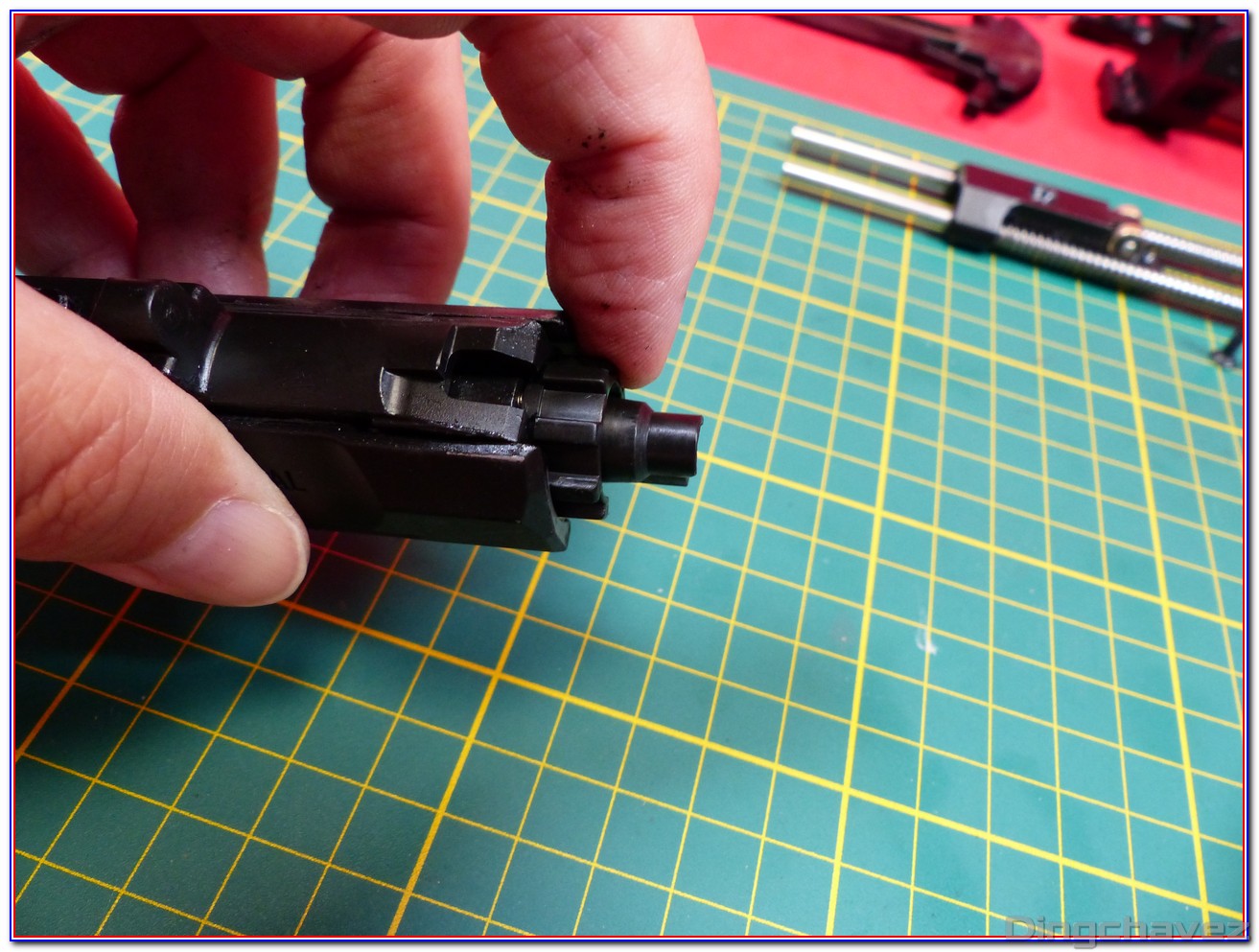 Il est maintenu fermé par un joint torique. Un second joint torique est placé sur le canon devant le bloc.