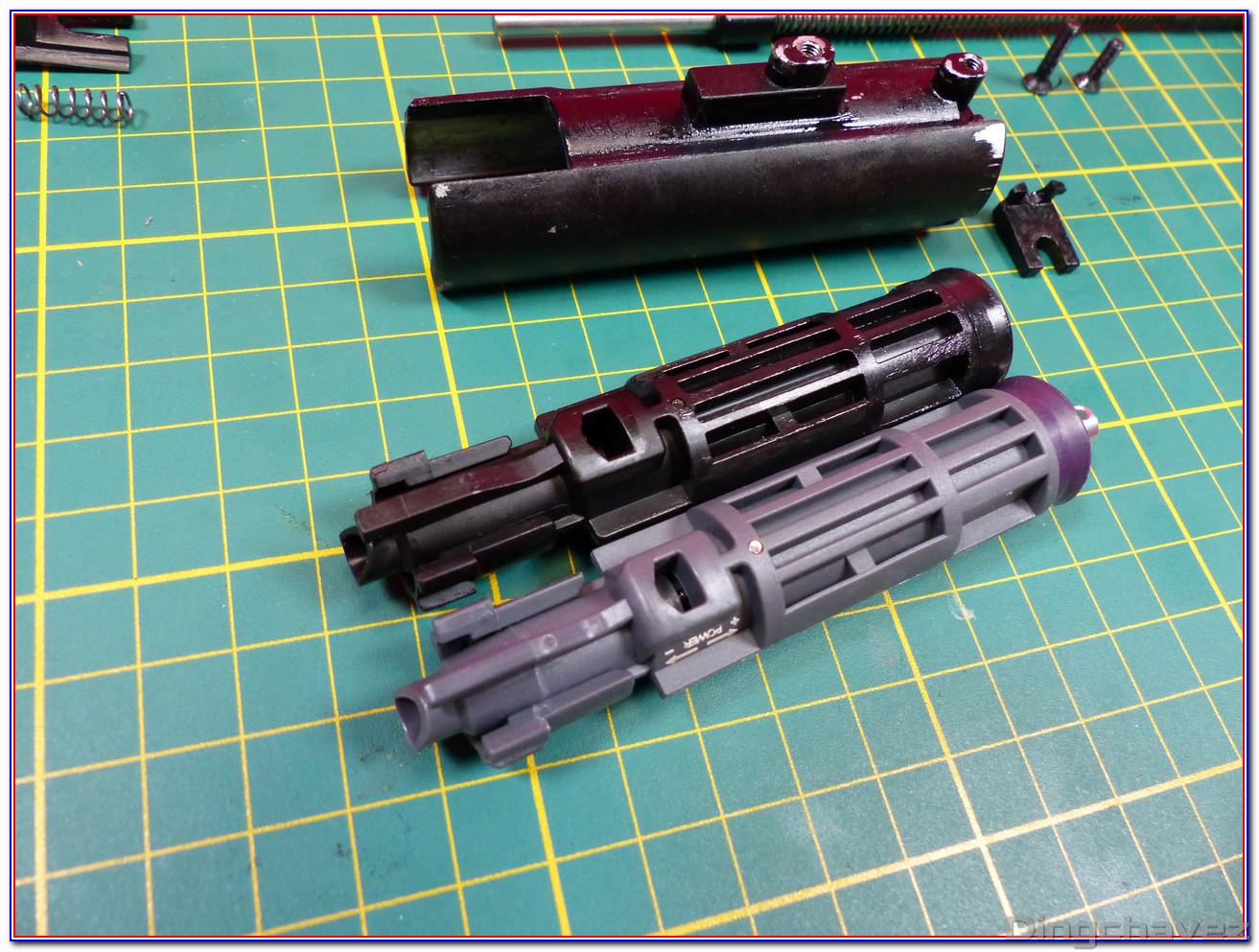 Comme sur le système Marui, le guide supérieur du nozzle est en plastique et est monté sur ressort.