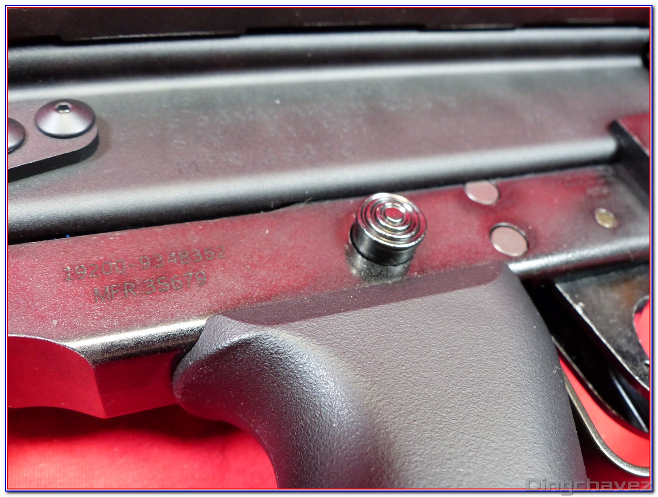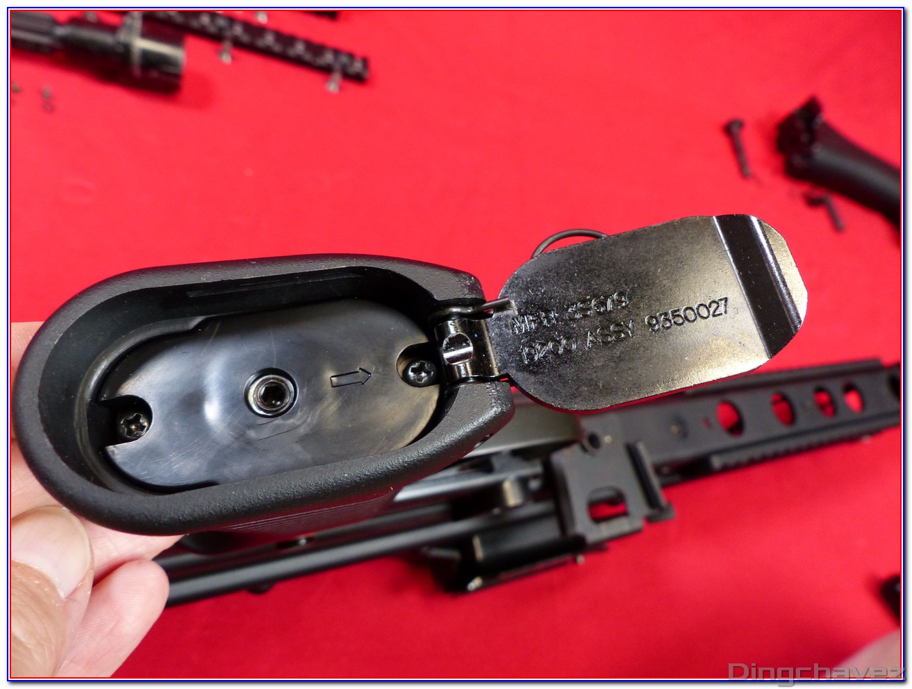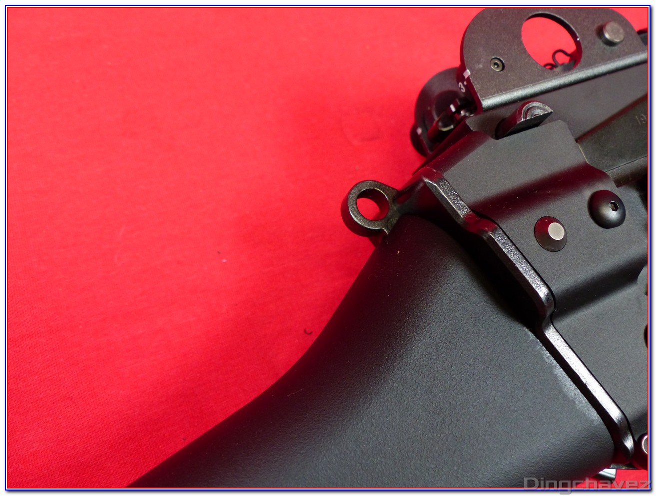 Si vous souhaitez déposer la crosse il faut ôter la goupille du bas. Je ne pense pas que la position de la goupille soit celle de la photo ci-dessous mais c’est comme cela que j’ai reçu la réplique.