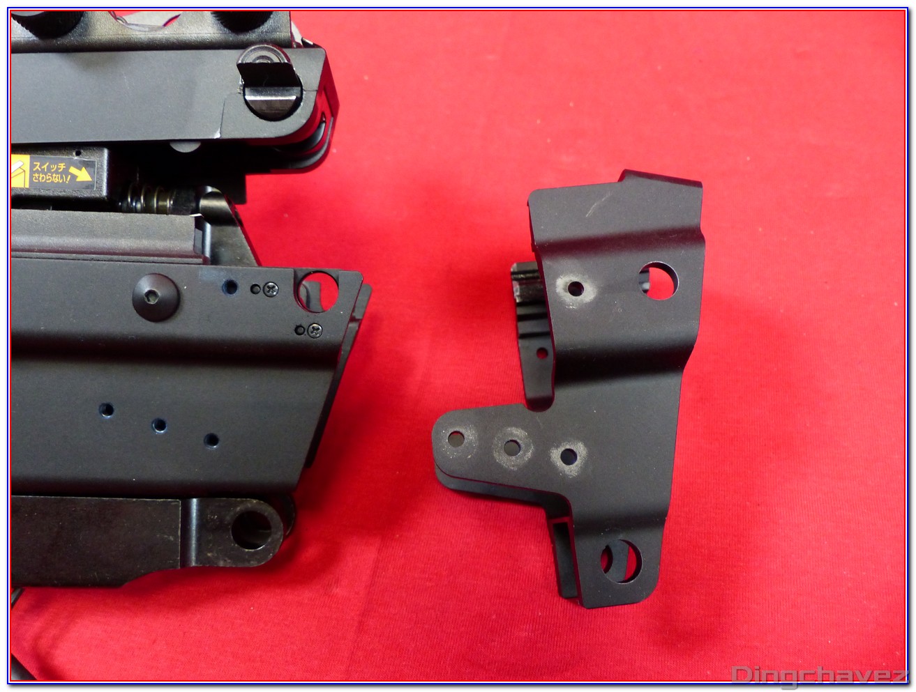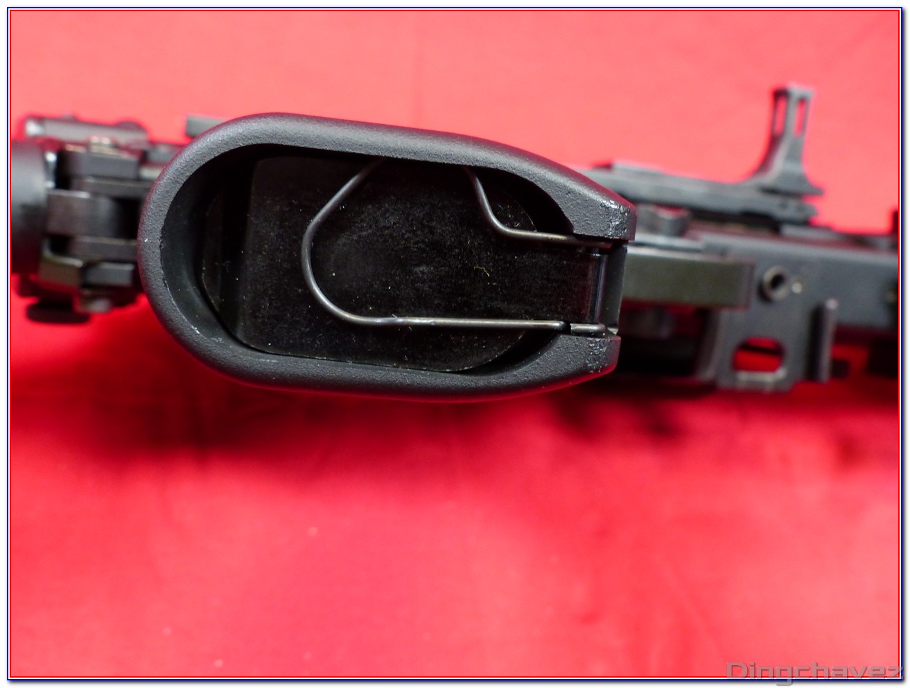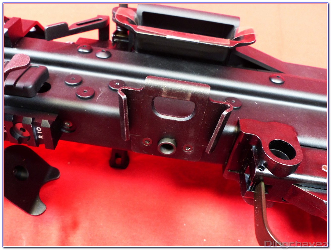 L’accroche en queue d’aronde de l’ammobox est vissée au corps de la réplique. Plusieurs utilisateurs ont rapporté des casses de cette pièce. Une pièce renforcée existe en cas de problème.