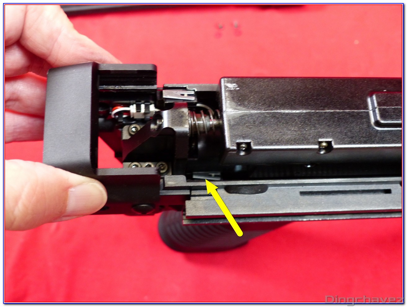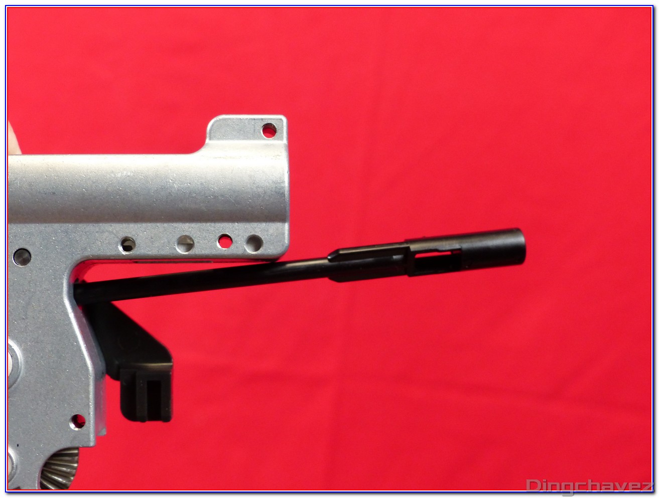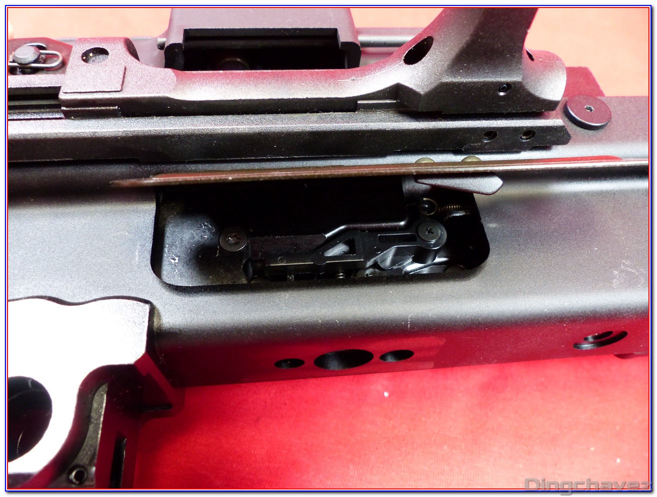 Pour y accéder il faut désolidariser le canon. Il suffit d’actionner le loquet situé du côté gauche de la réplique.