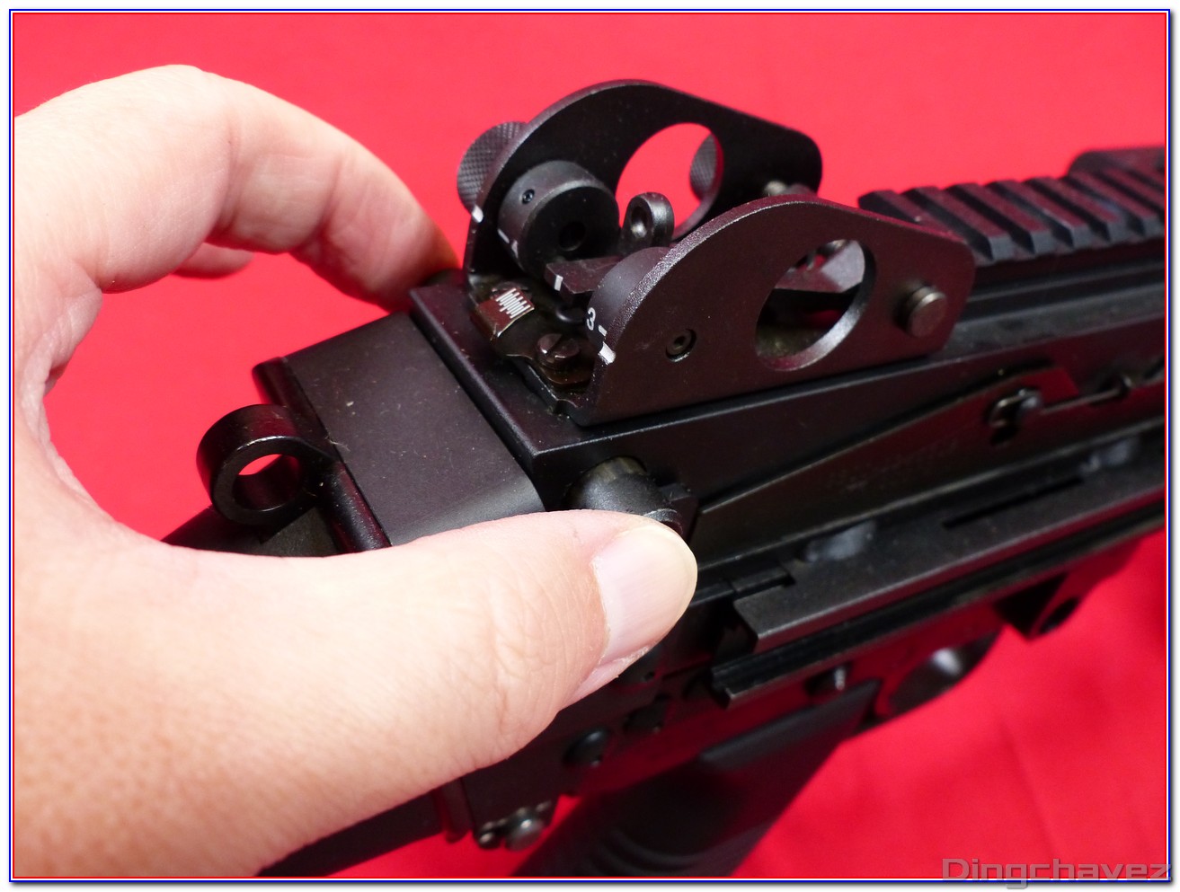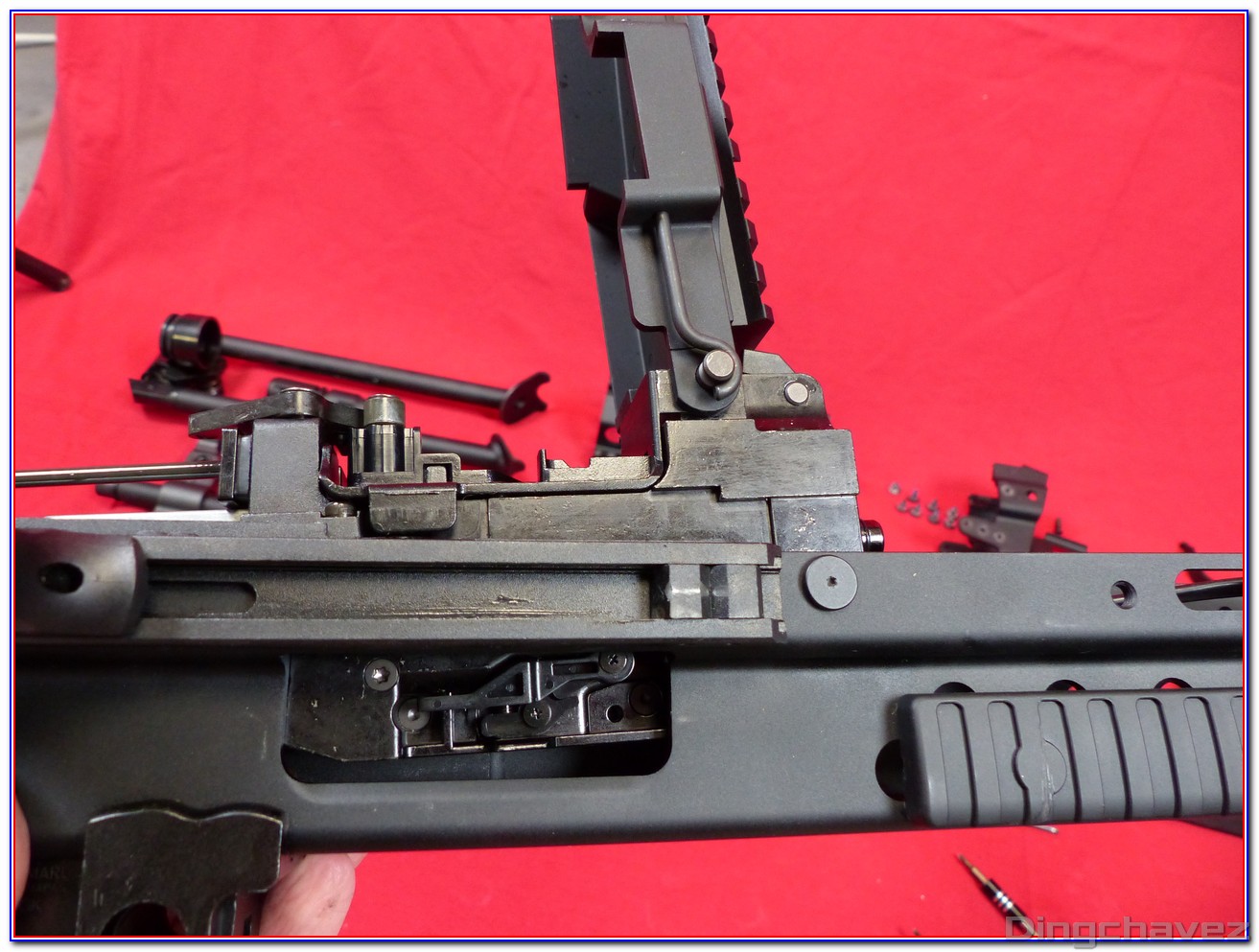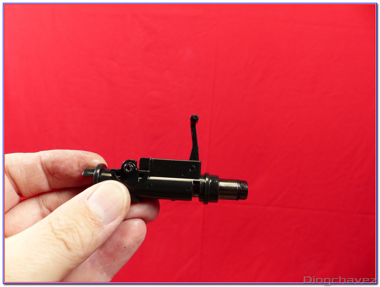 Pour y accéder il faut désolidariser le canon. Il suffit d’actionner le loquet situé du côté gauche de la réplique.