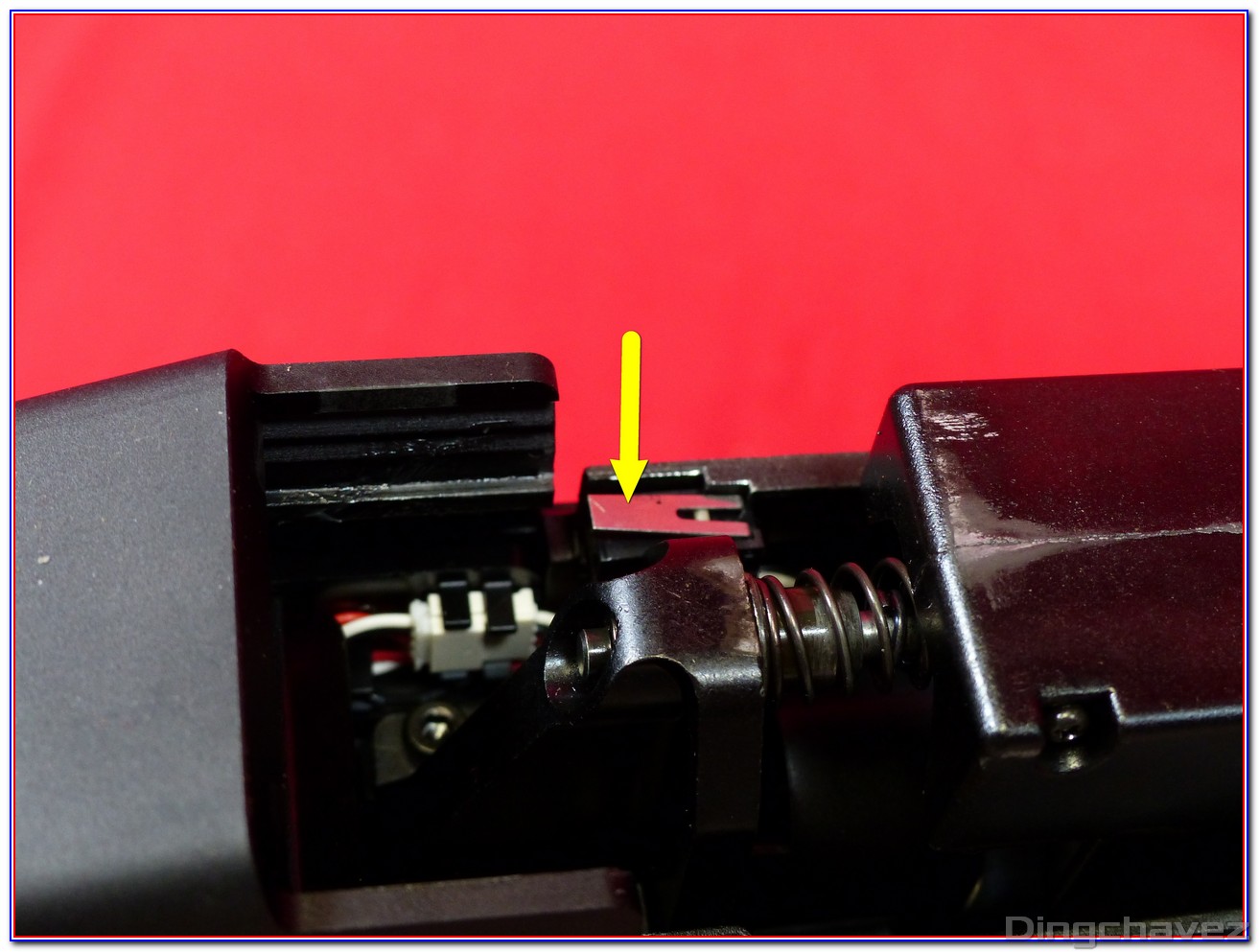 C’est ici que l’on vient accrocher la fausse cartouche de bout e bande.