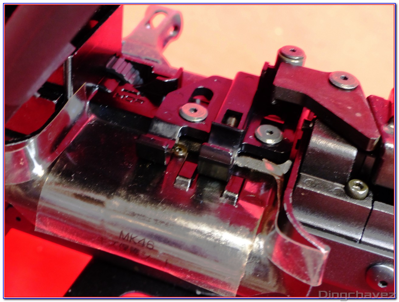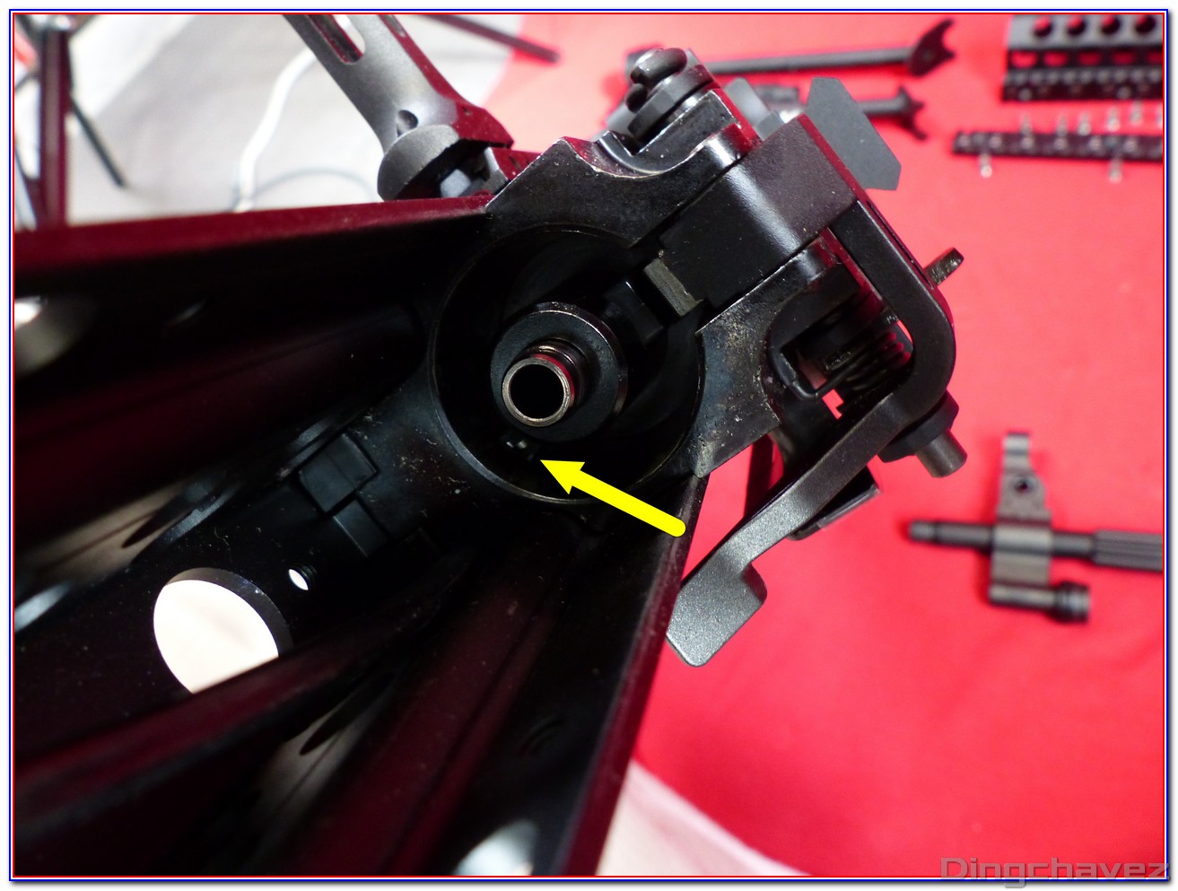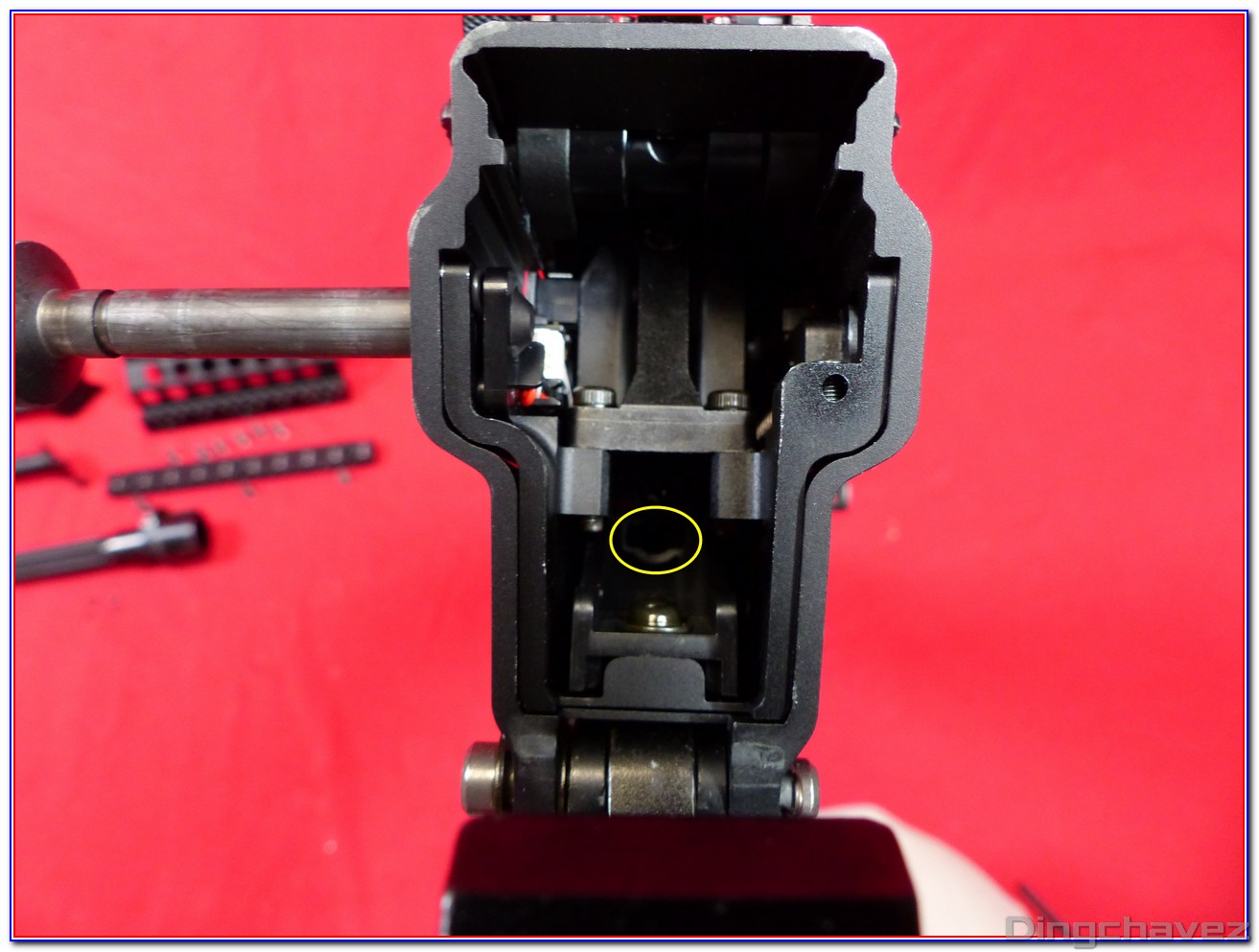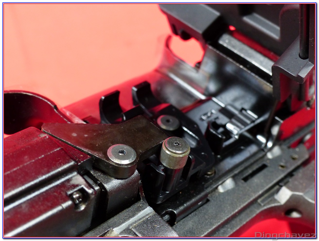 Ci dessous on voit les guides latéraux du nub et le joint de hop-up (bucking).