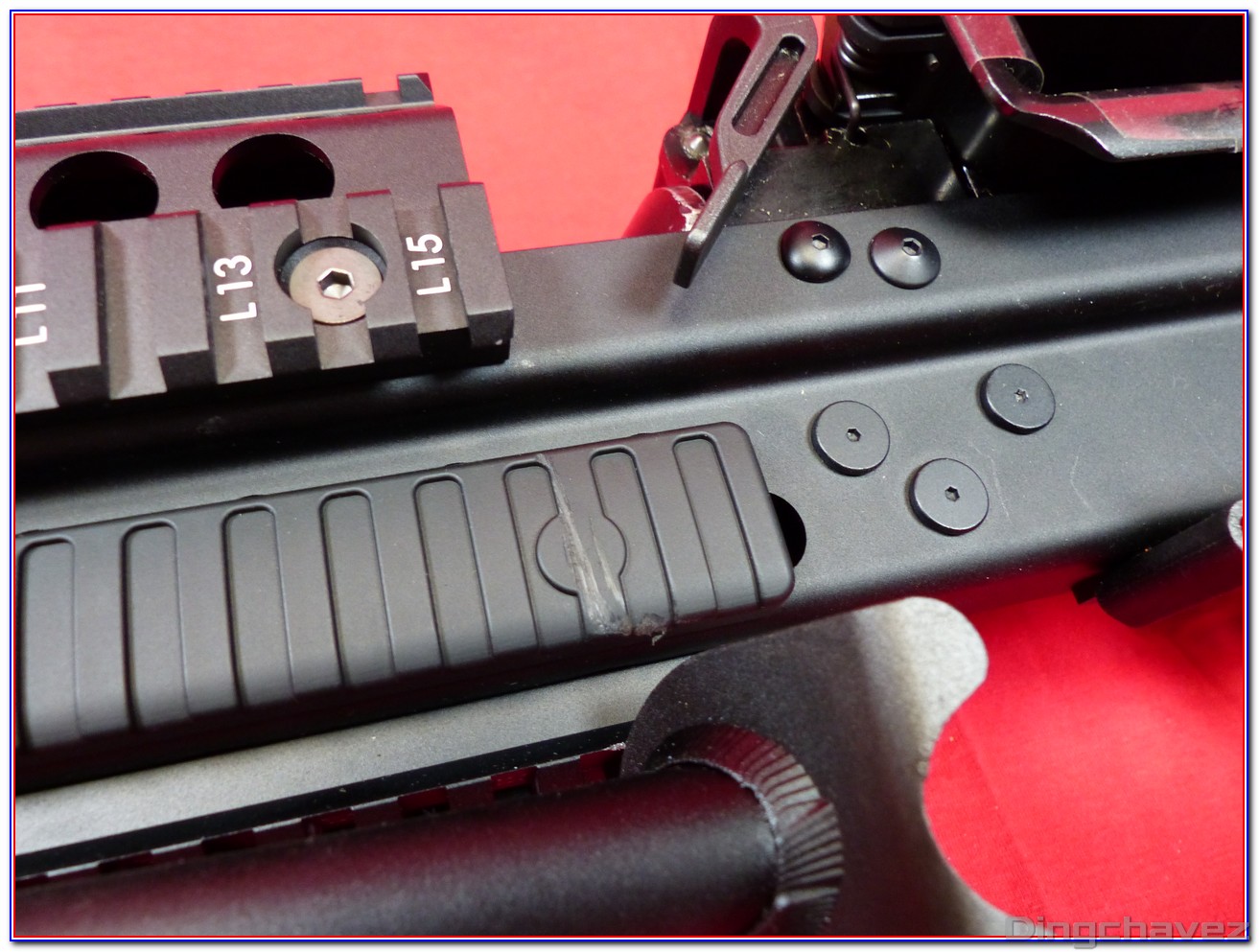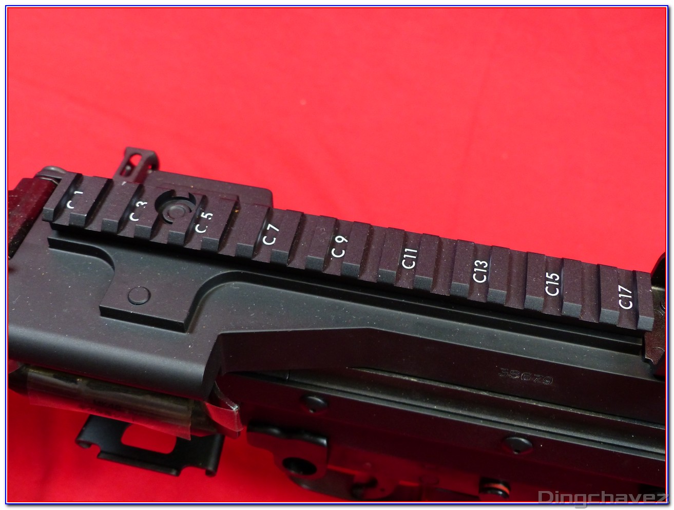 Un rail Picatinny prend place sur le capot. les emplacements sont repérés par une lettre (C pour cover) et un chiffre.