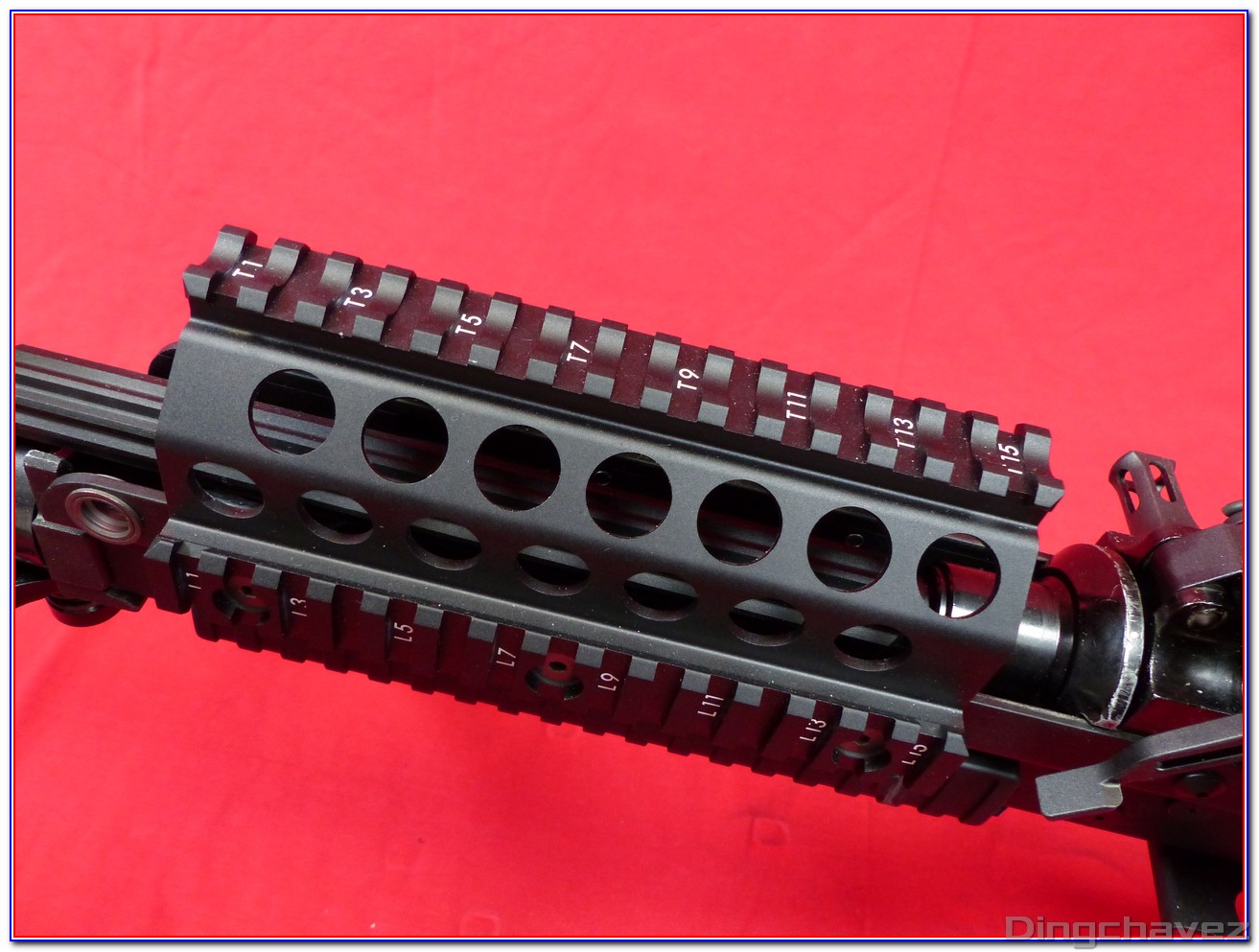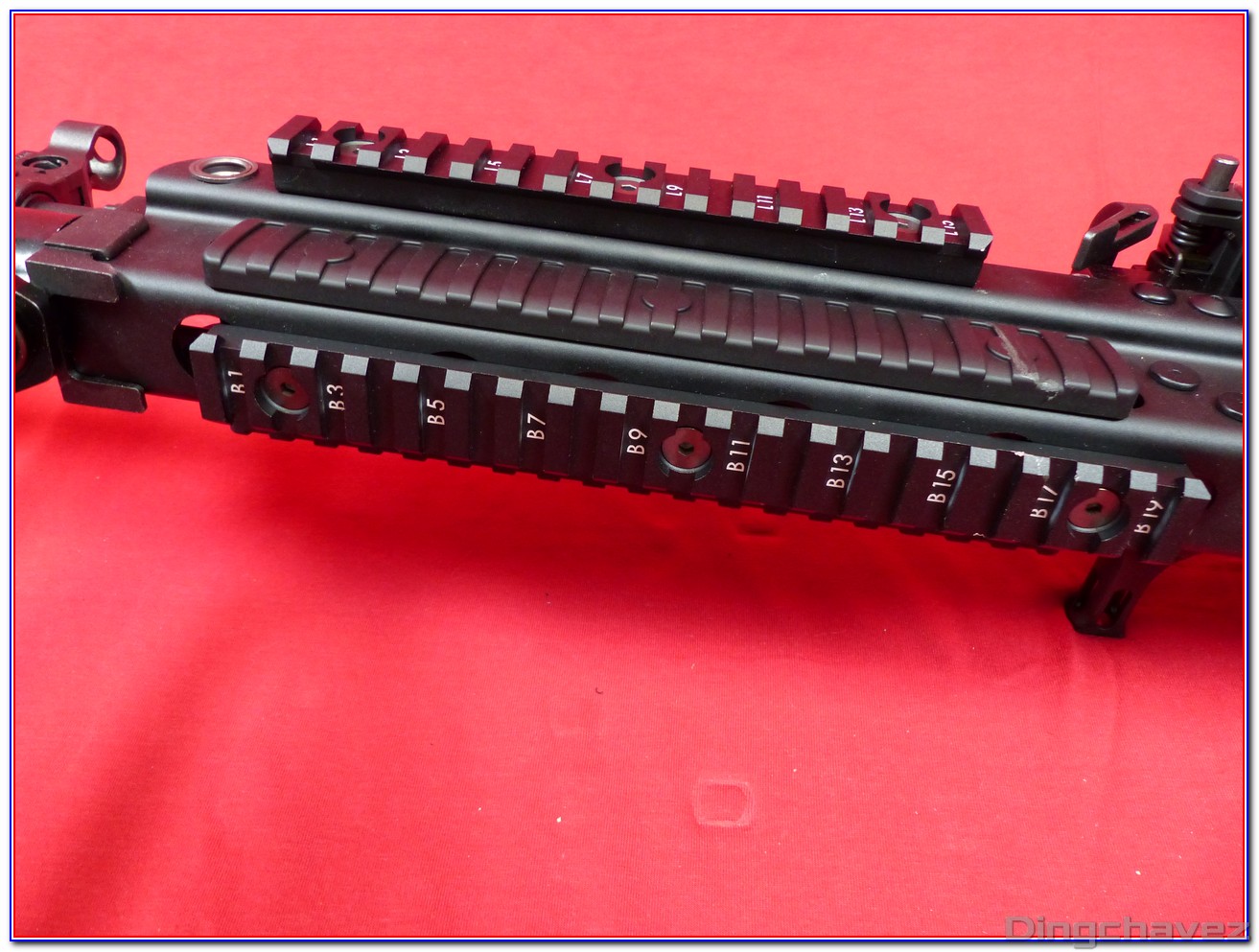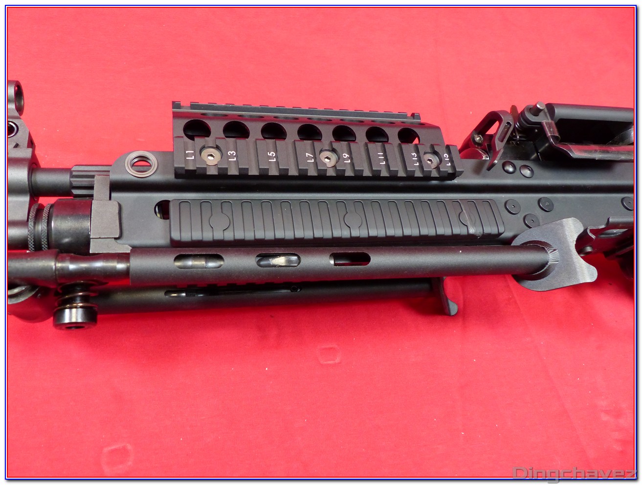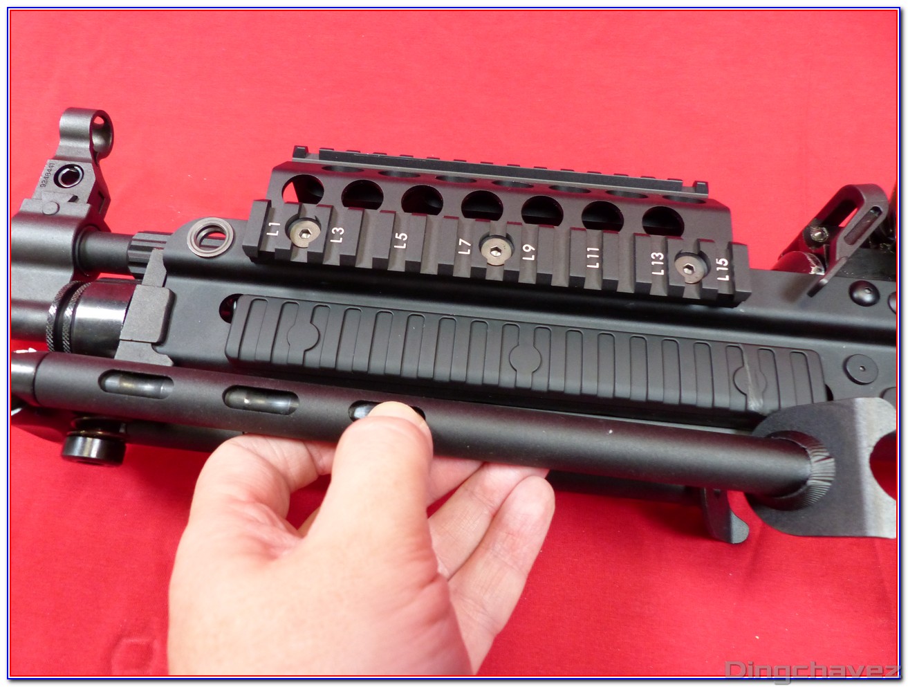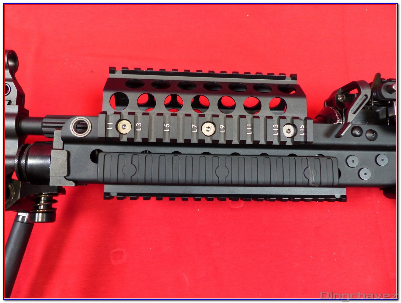 La partie haute du garde-main est spécifique à la Mk46 MOD.0 , il est en aluminium et dispose de trois rails.