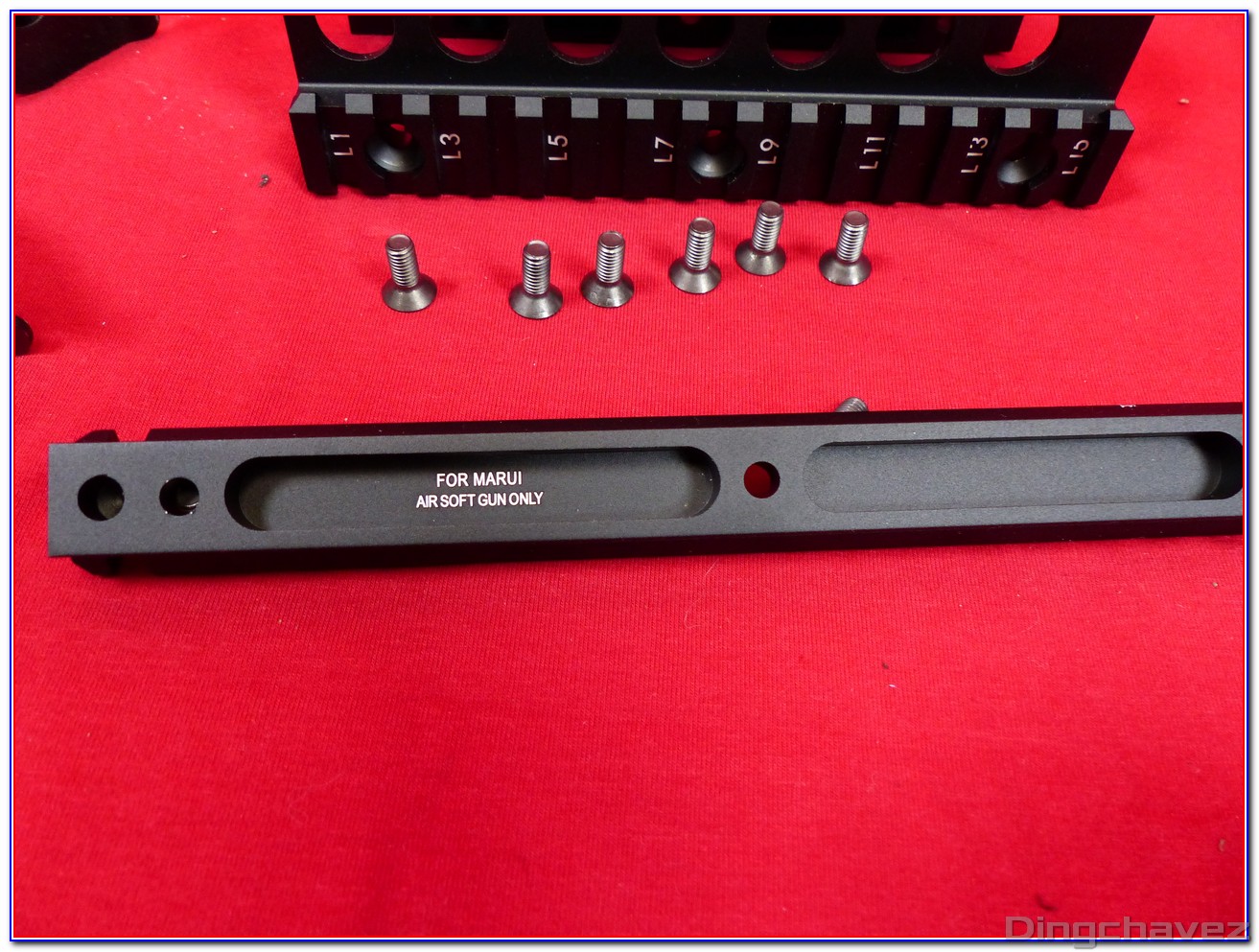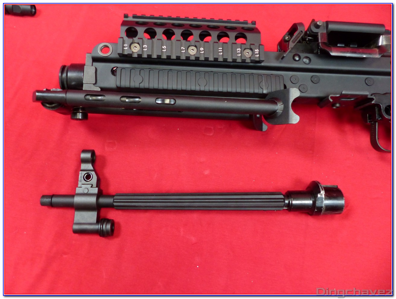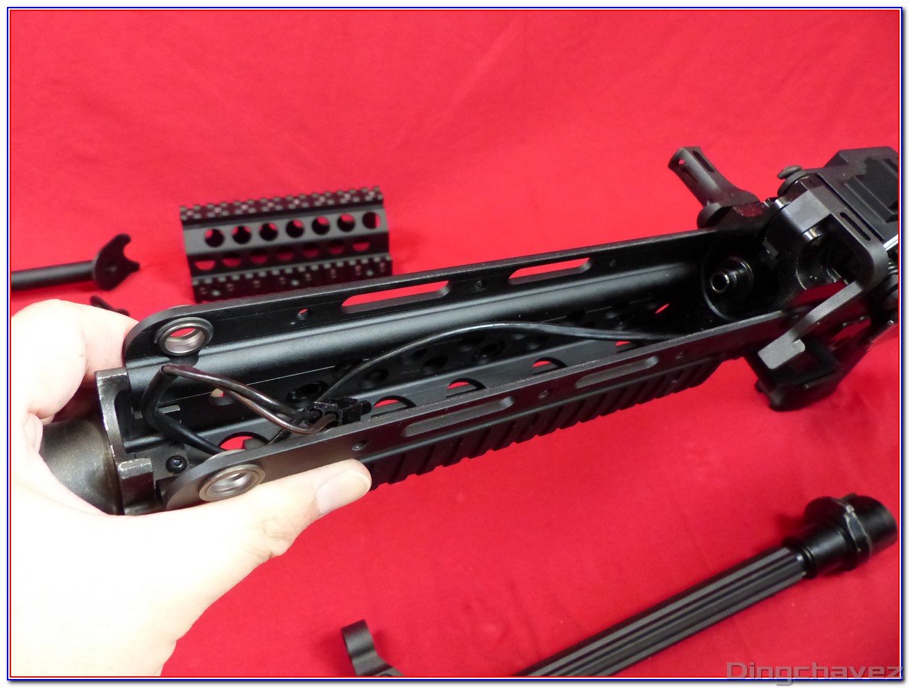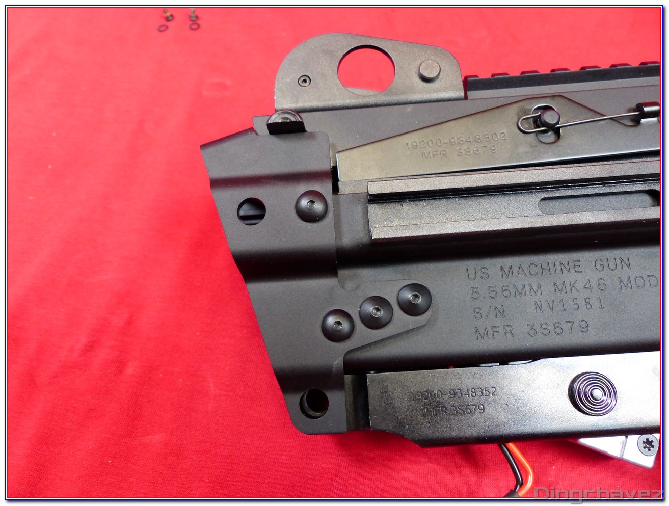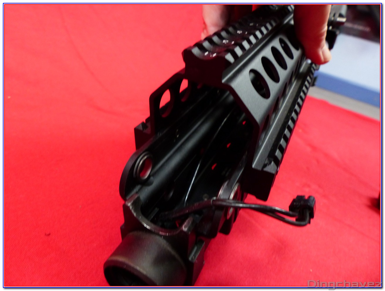 La partie haute du garde-main est spécifique à la Mk46 MOD.0 , il est en aluminium et dispose de trois rails.