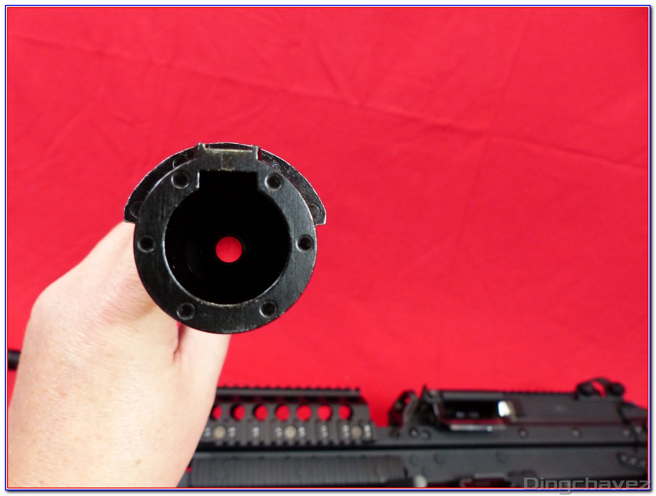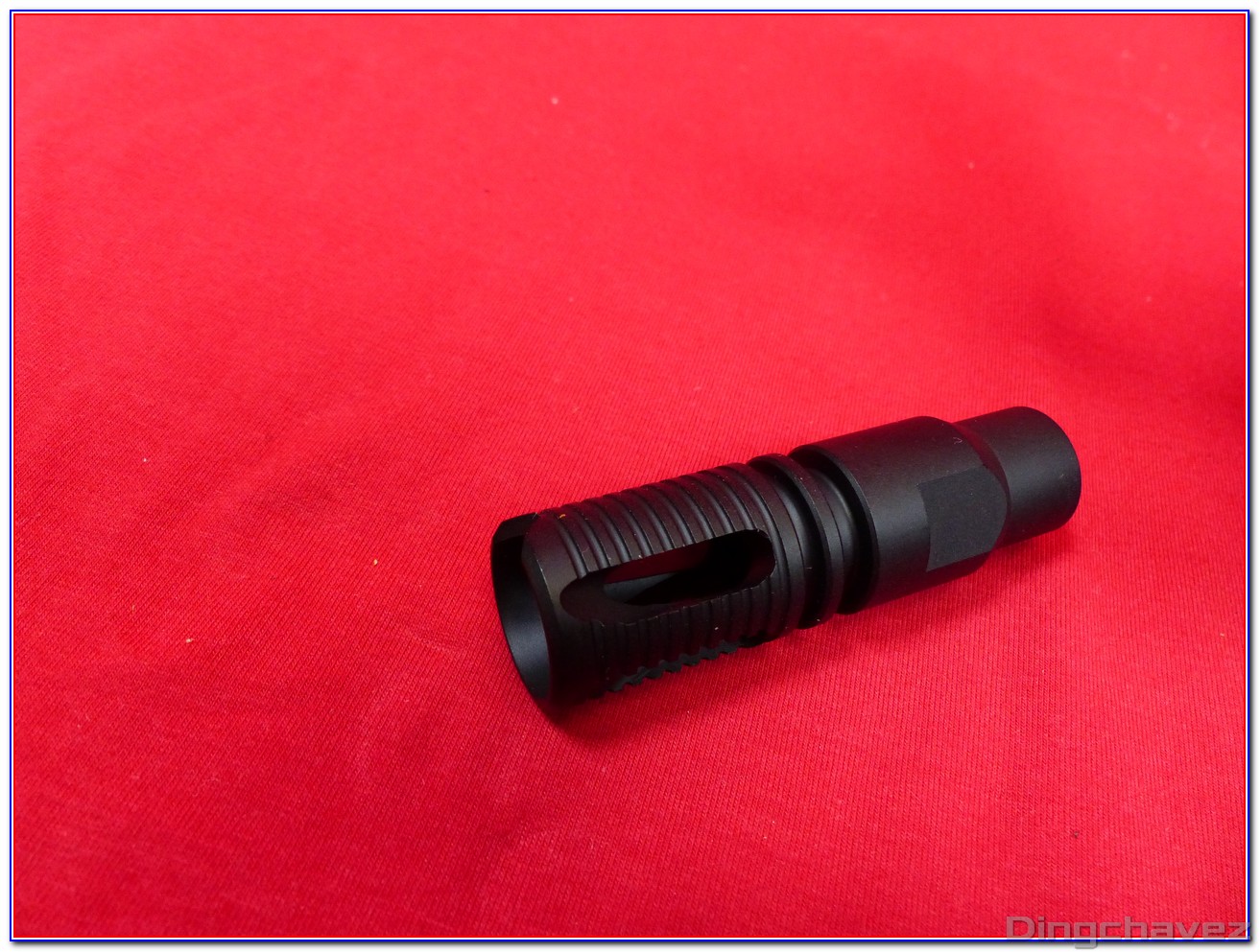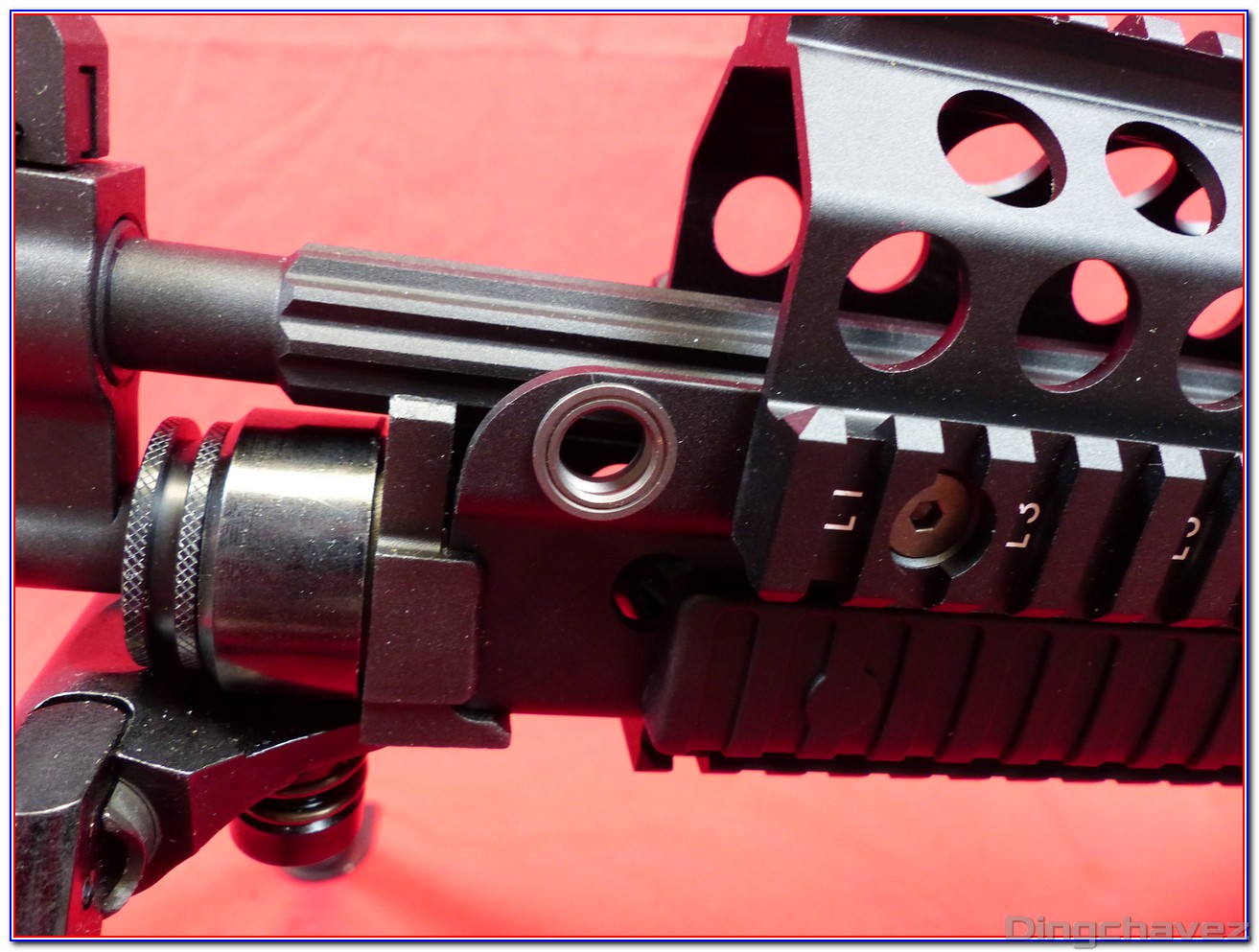 Le canon externe se termine par un compensateur en alliage vissé via un filetage au pas de 14mm antihoraire (CCW).