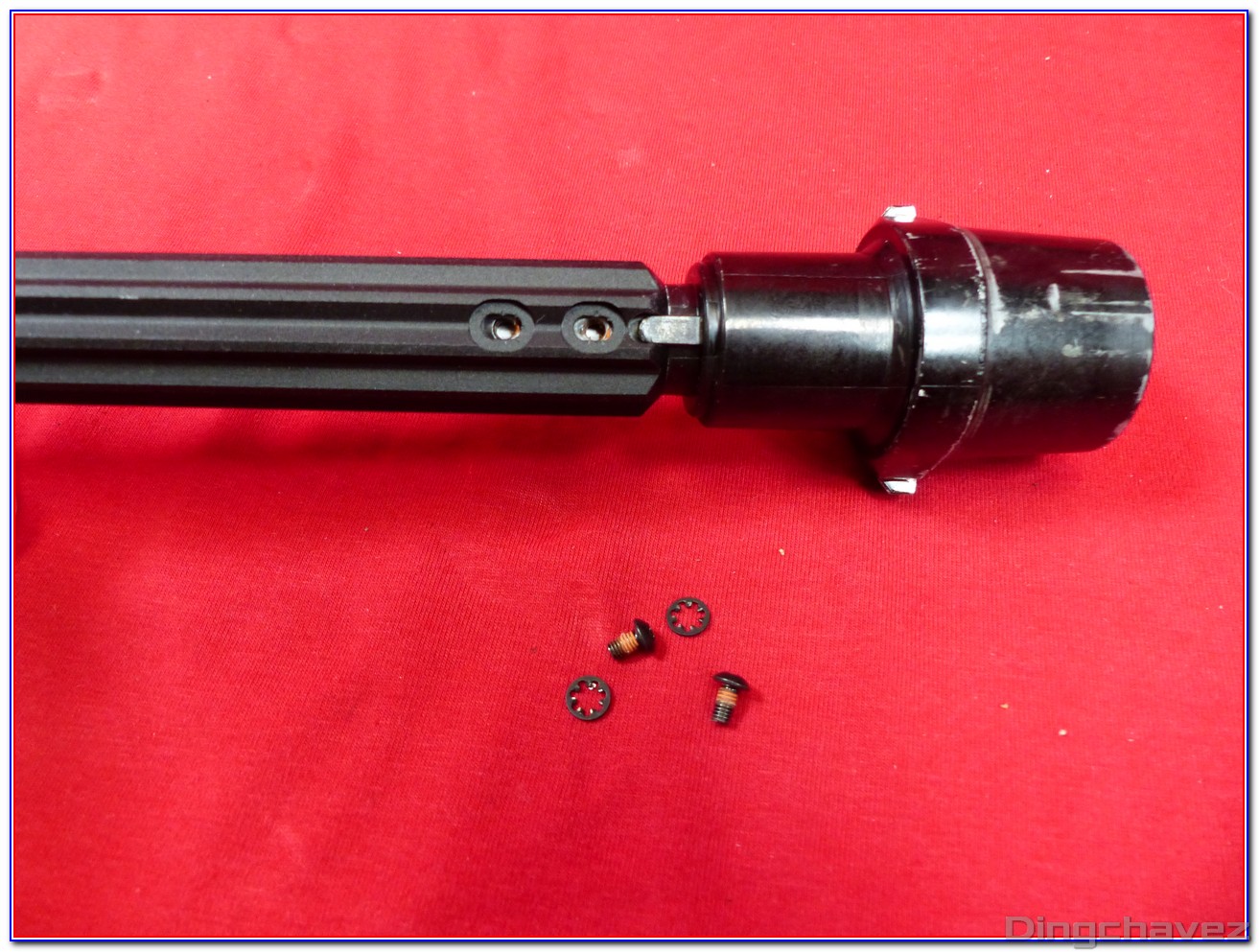 J’ai tenté de retirer le canon interne mais malgré les deux vis enlevées il semblerait qu’un produit d’assemblage blanchâtre ait été utilisé en plus mais c’était peut-être simplement une légère oxydation de l’aluminium.