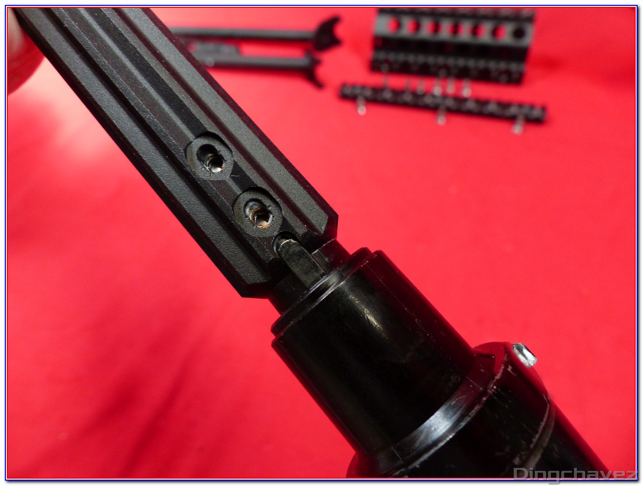Même si vous choisissez de ne pas conserver le bipied il faut remettre la vis car cette dernière sert de logement au faux emprunt des gaz monté sur le canon externe et gomme les jeux.
