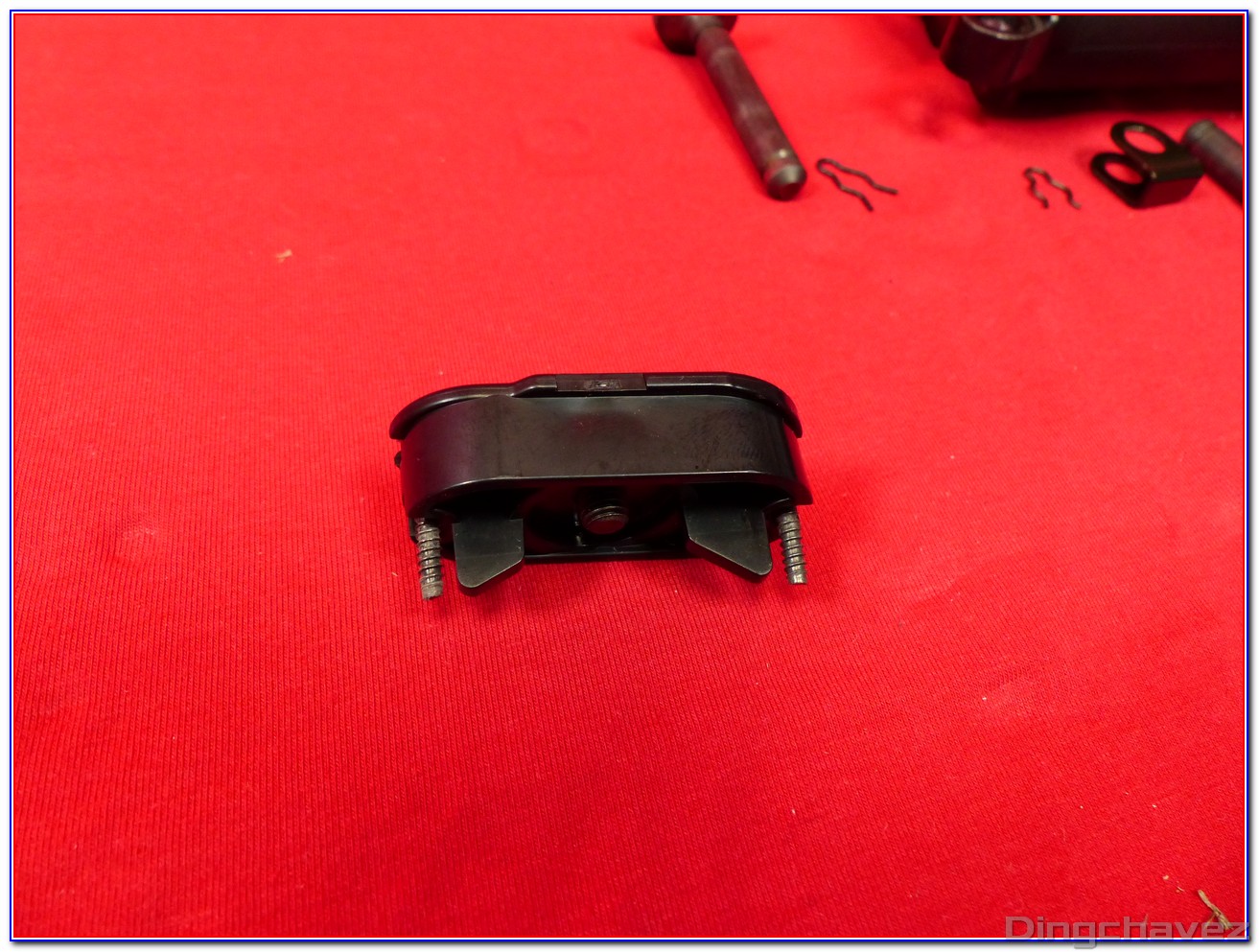 Il reste deux vis sur le support avant du recoil shock. Ce sont elles qui sont situées sous le support (ou plateau) de munitions.