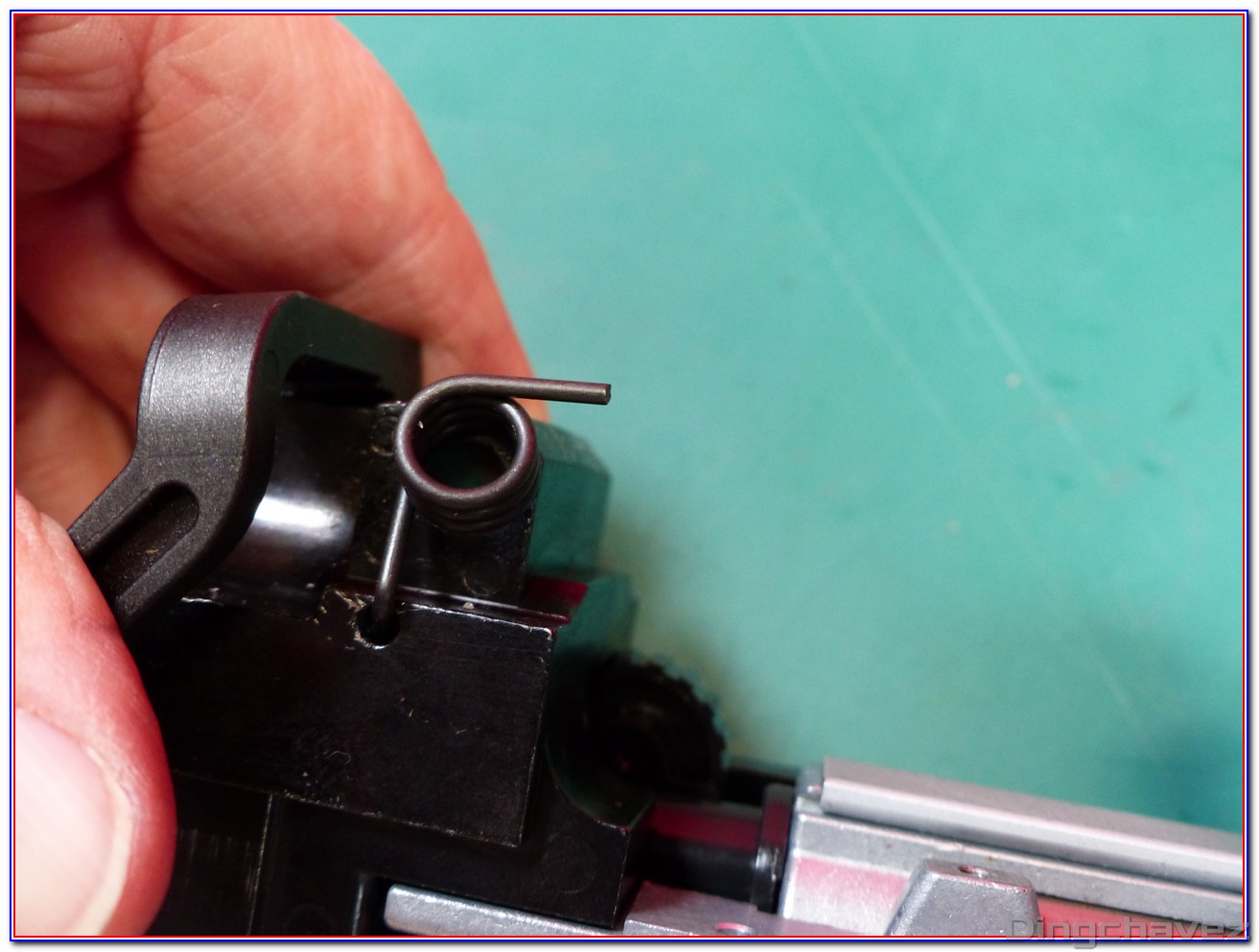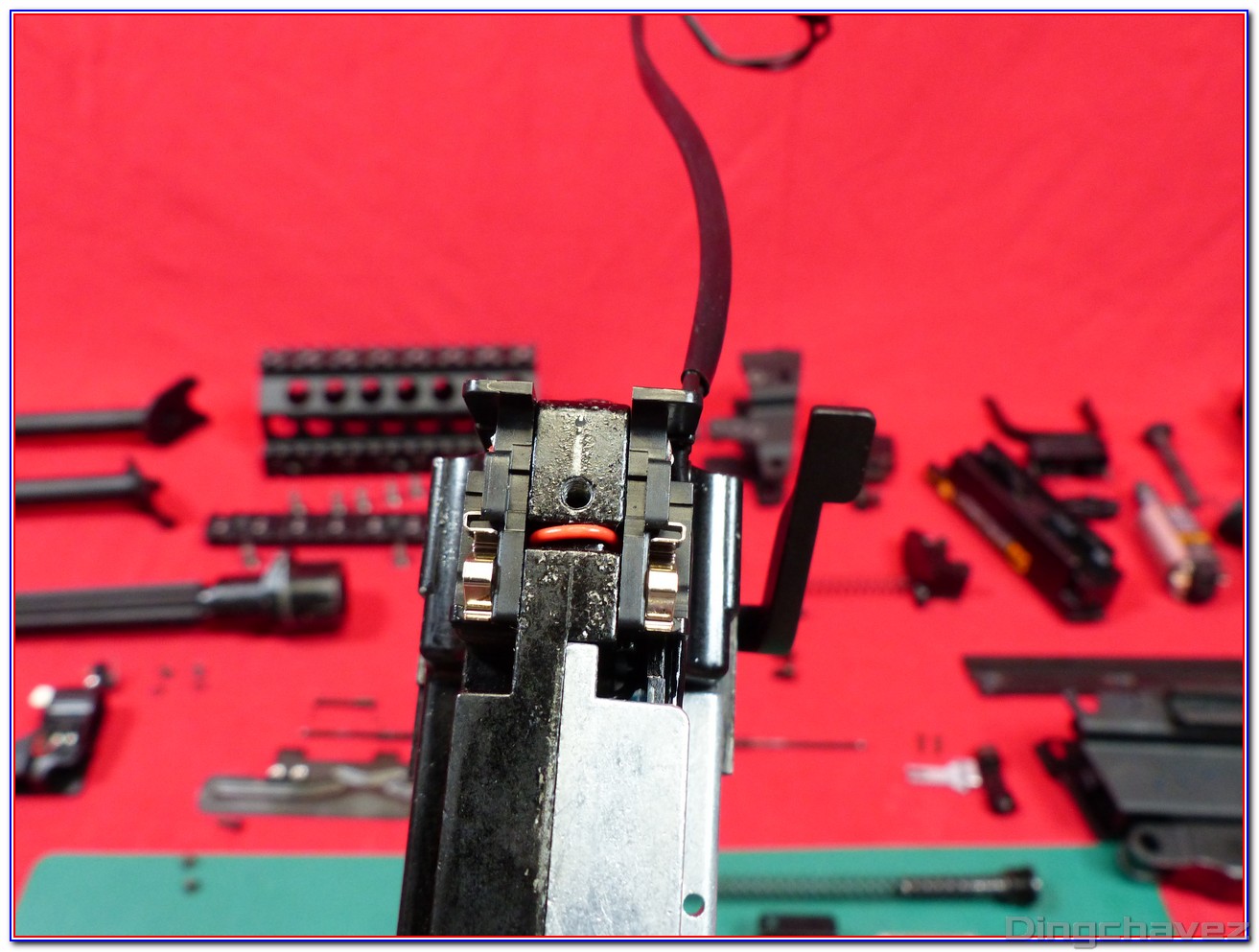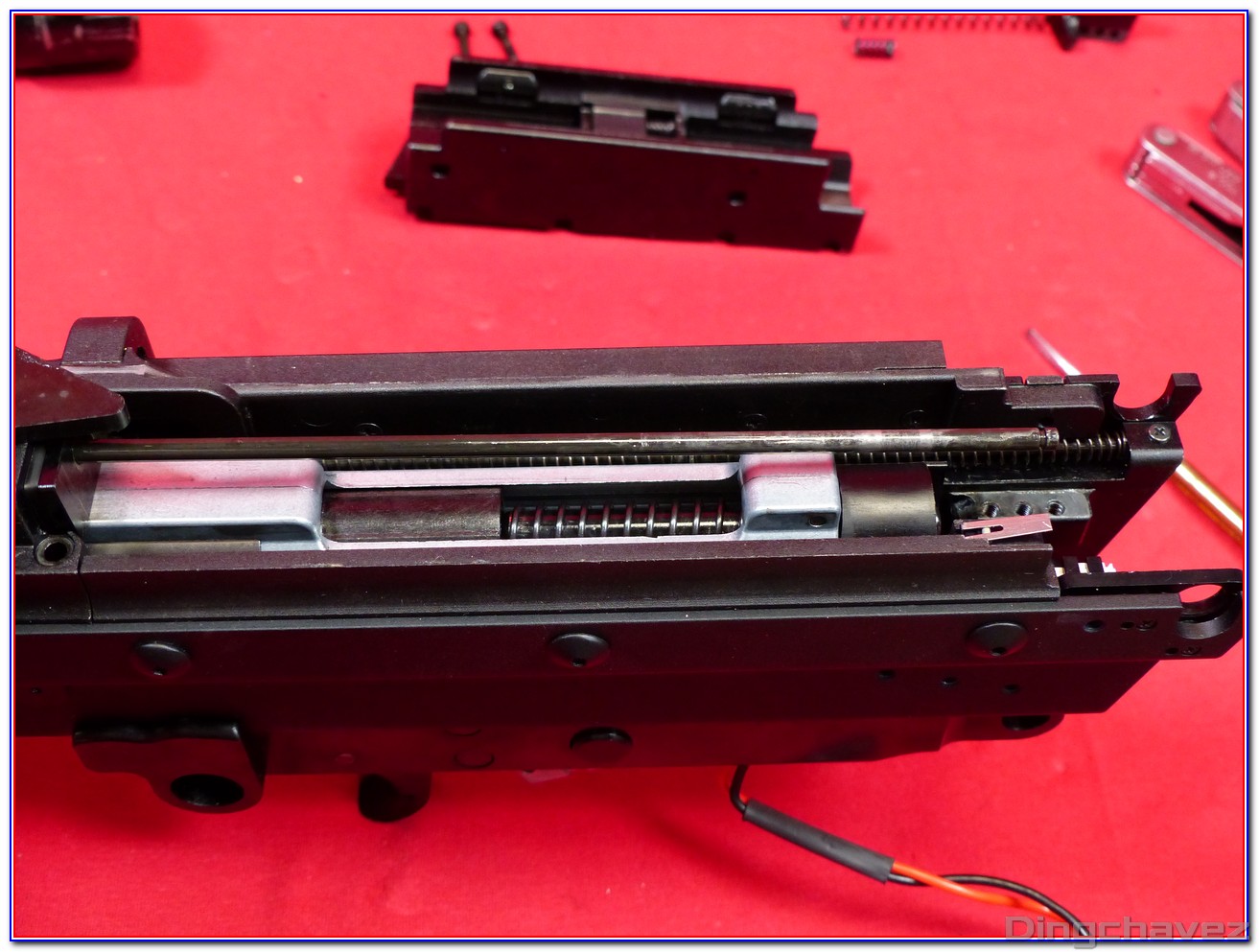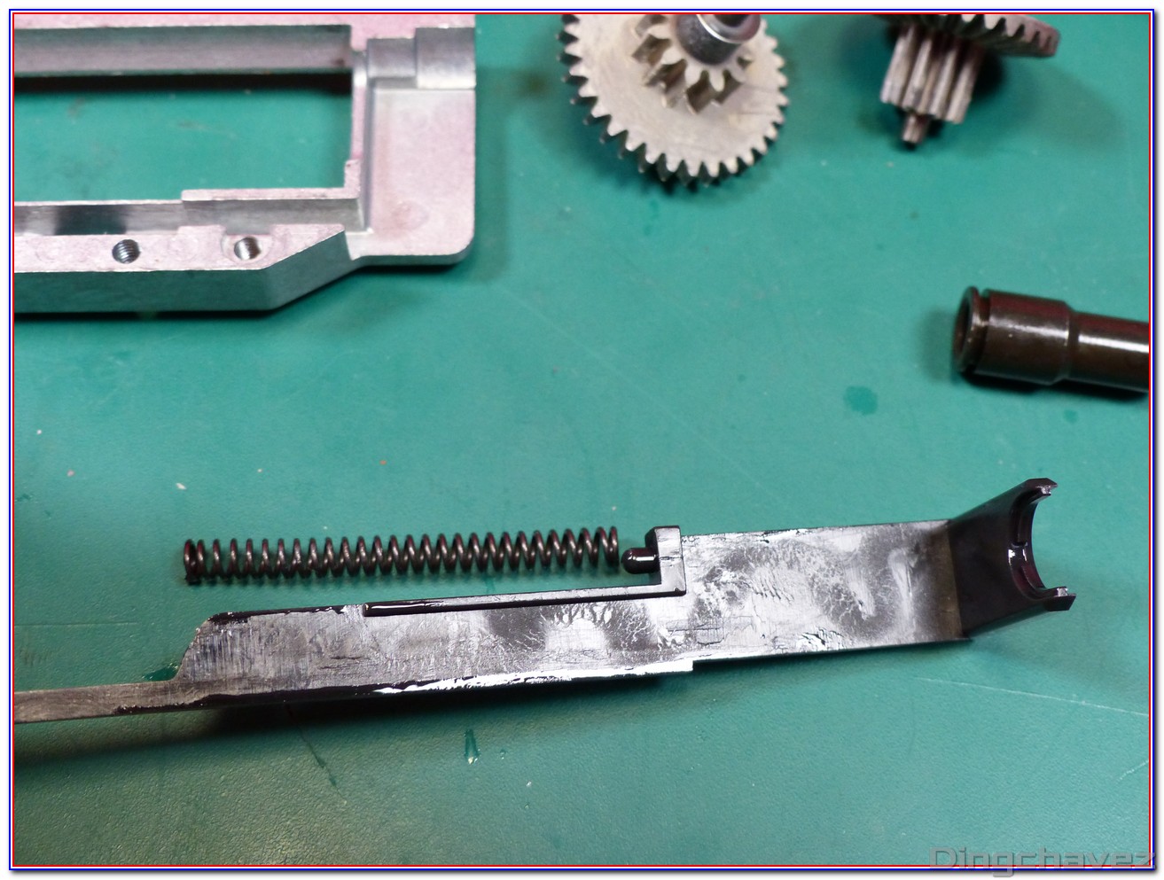 Malheur ! Le ressort est fin et épais, il ne s’agit pas d’un ressort d’AEG standard. Le guide est dimensionné en conséquence.
