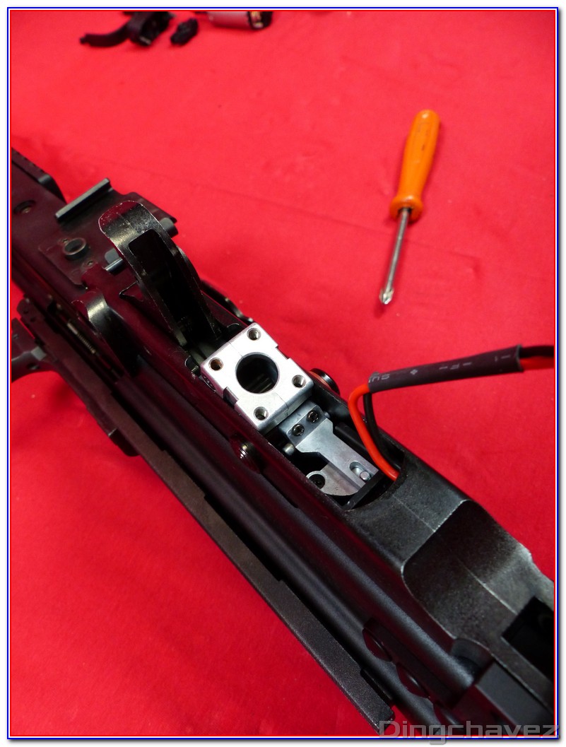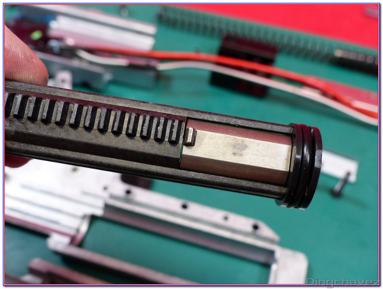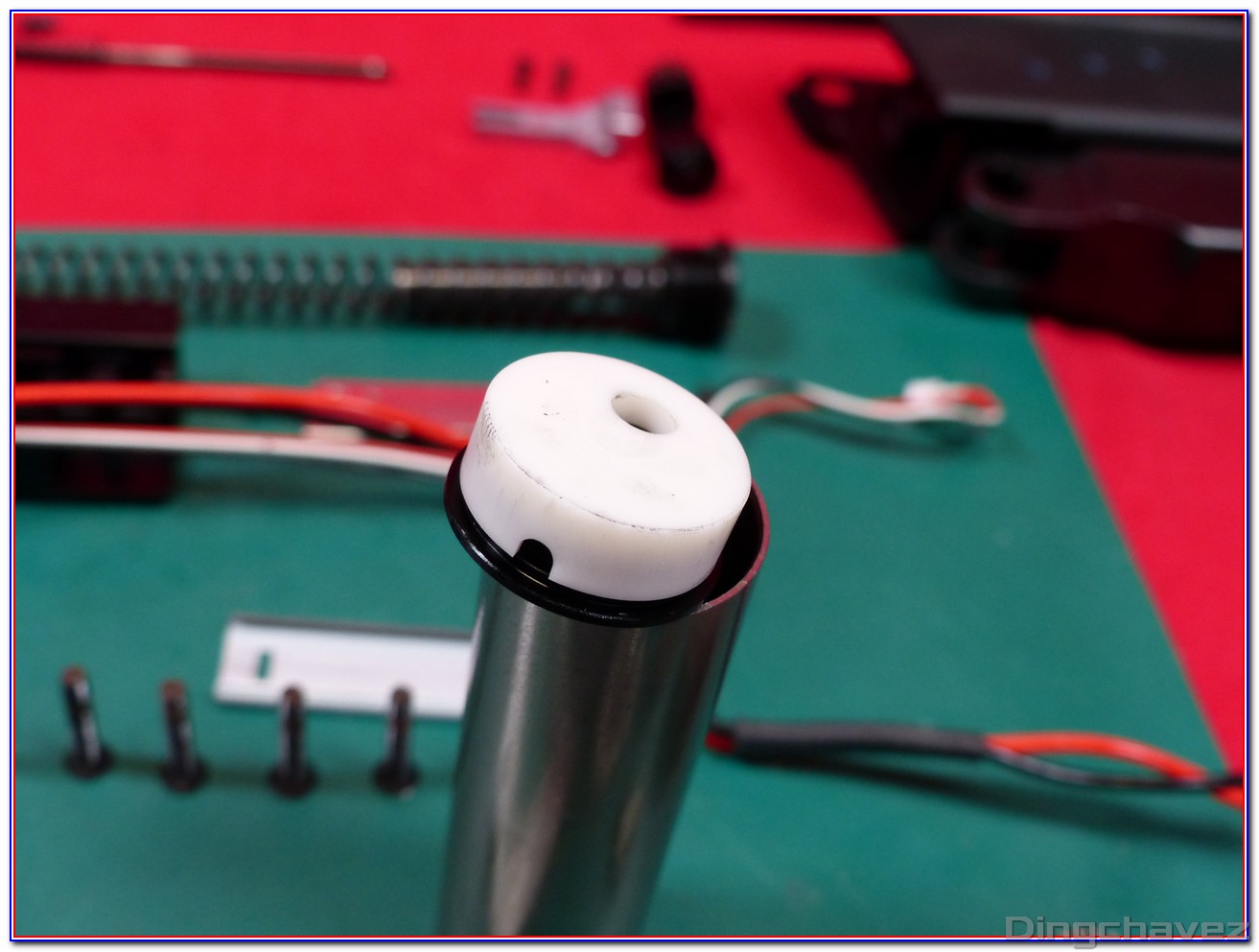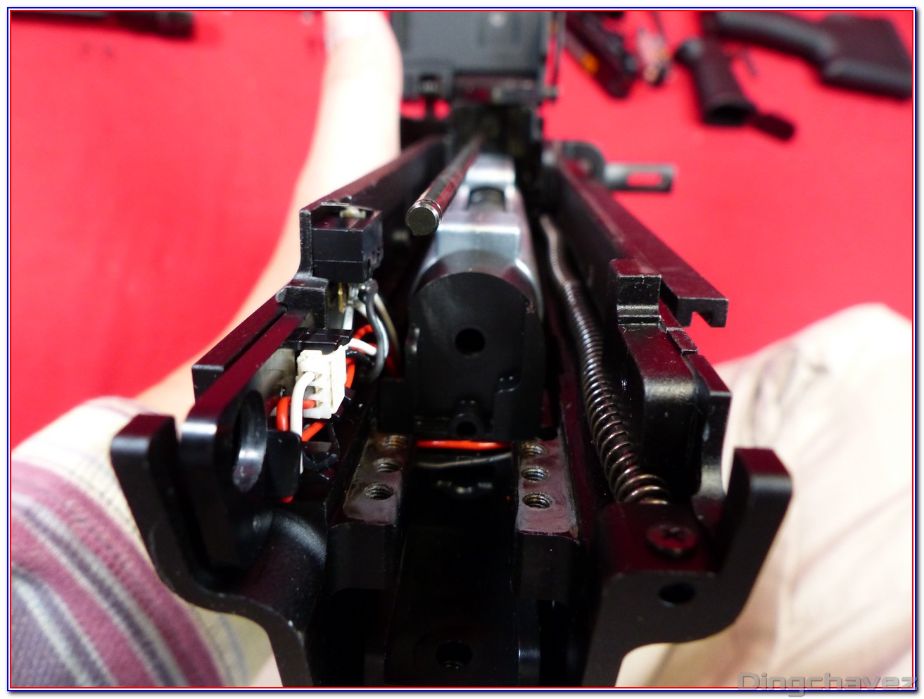 Malheur ! Le ressort est fin et épais, il ne s’agit pas d’un ressort d’AEG standard. Le guide est dimensionné en conséquence.