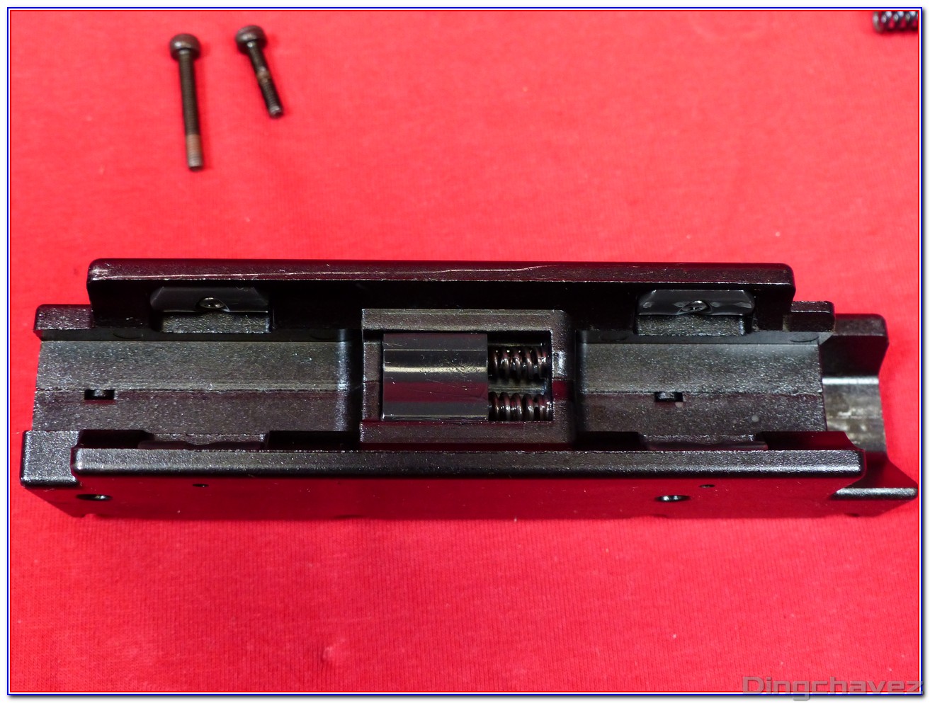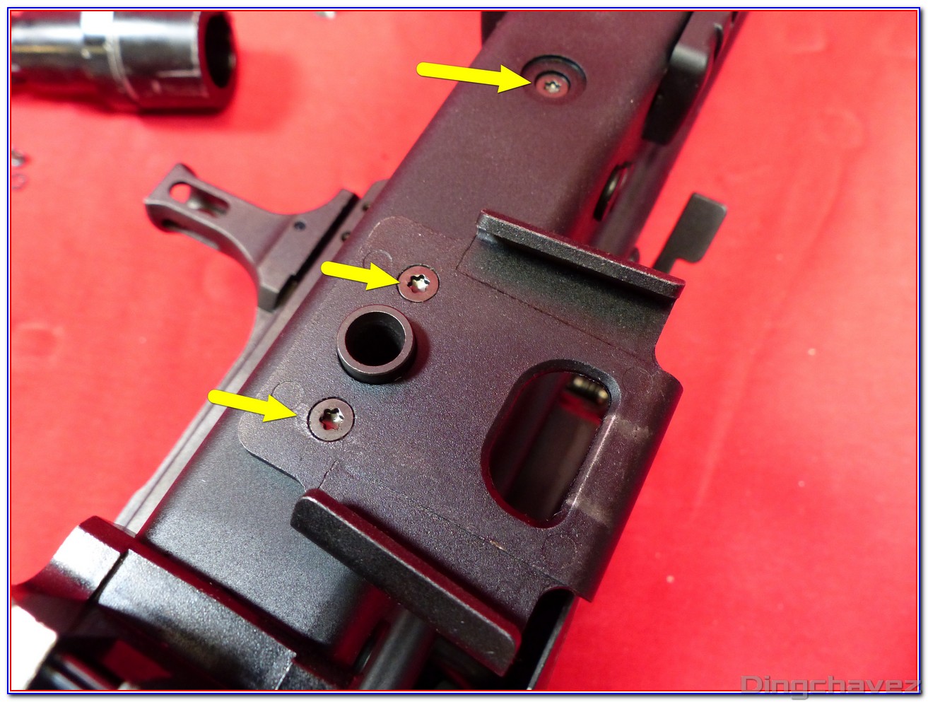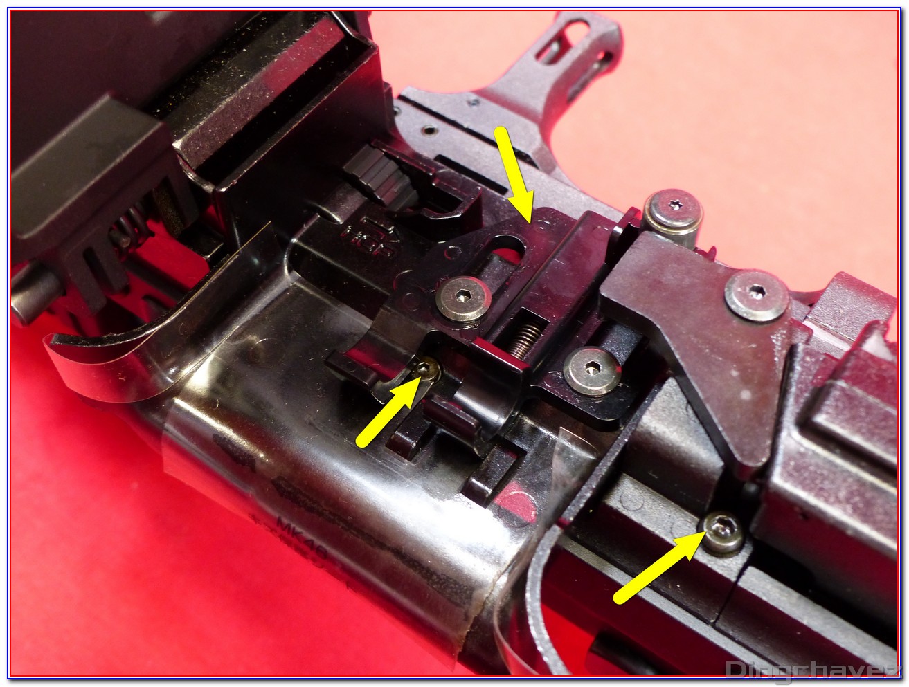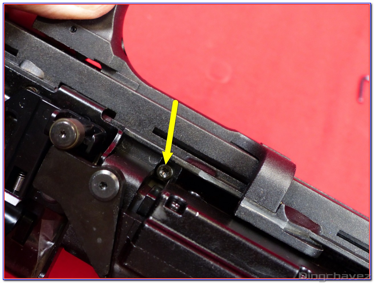 Ici les deux petites vis qui maintiennent le guide des munitions.