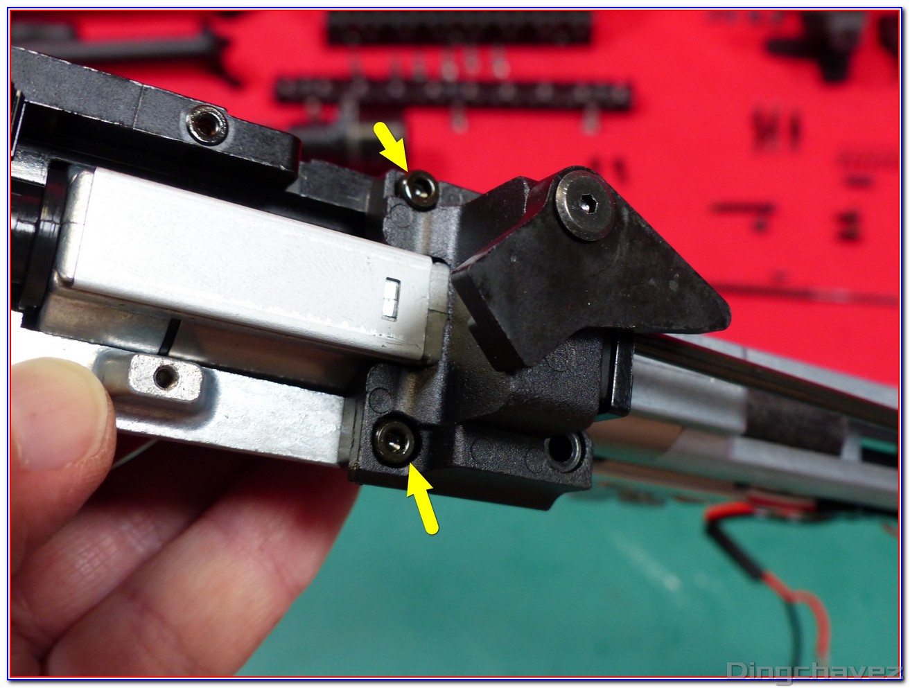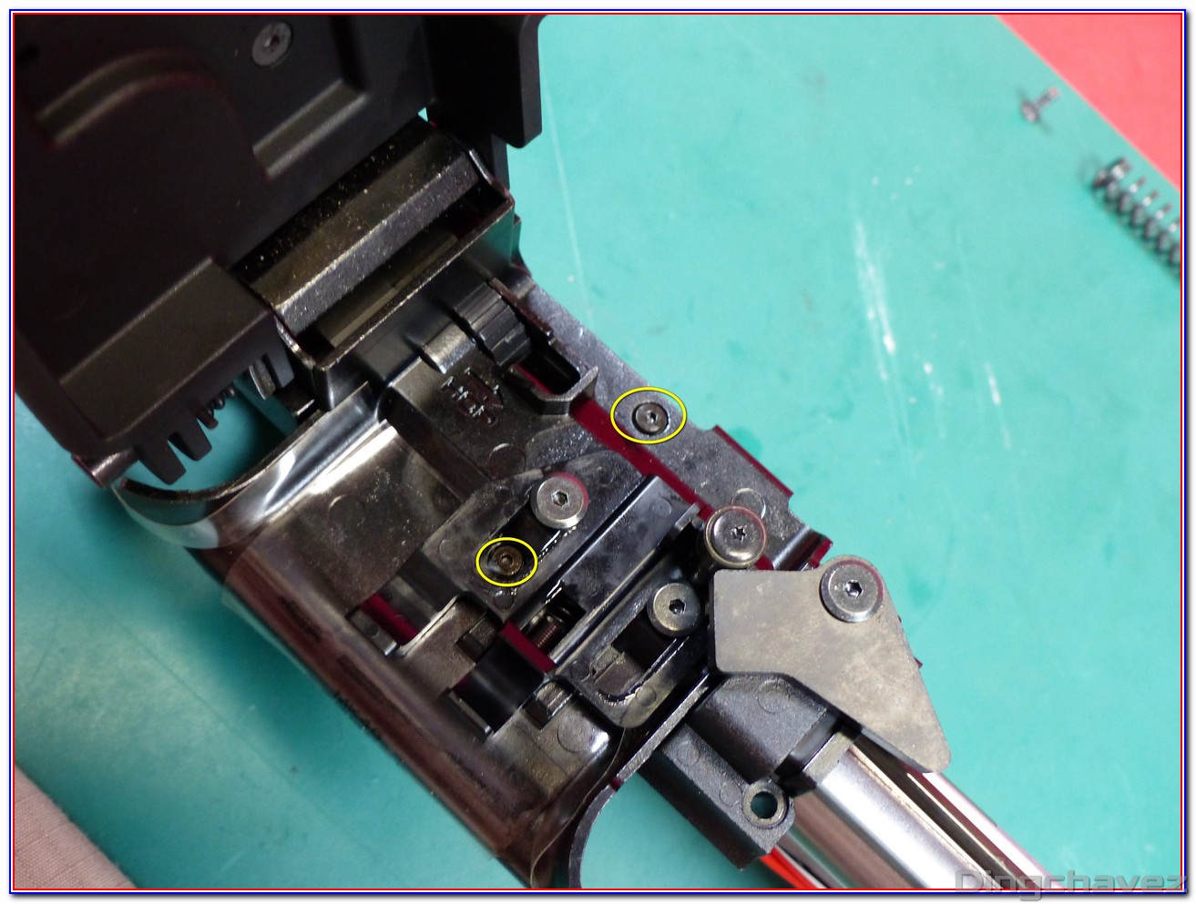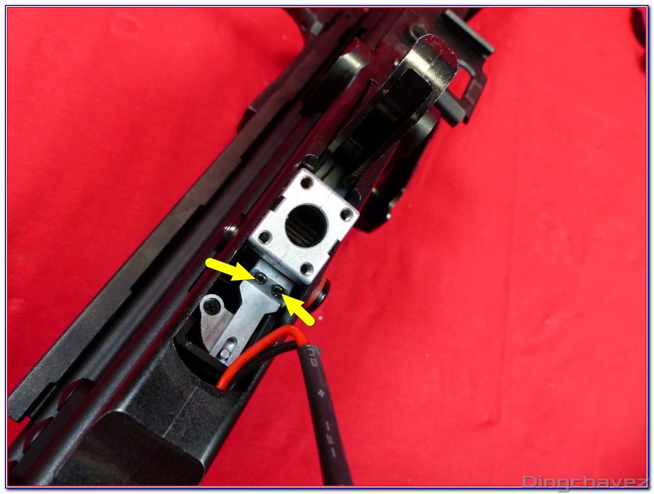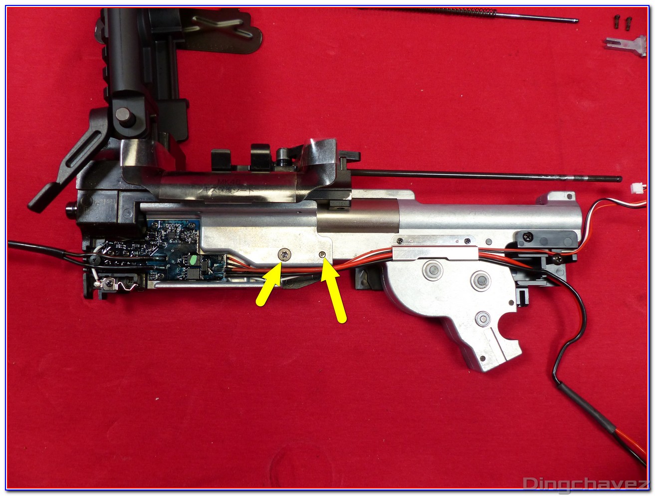 Ici les deux petites vis qui maintiennent le guide des munitions.