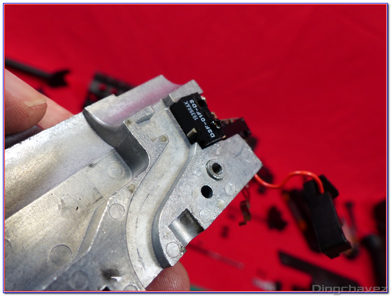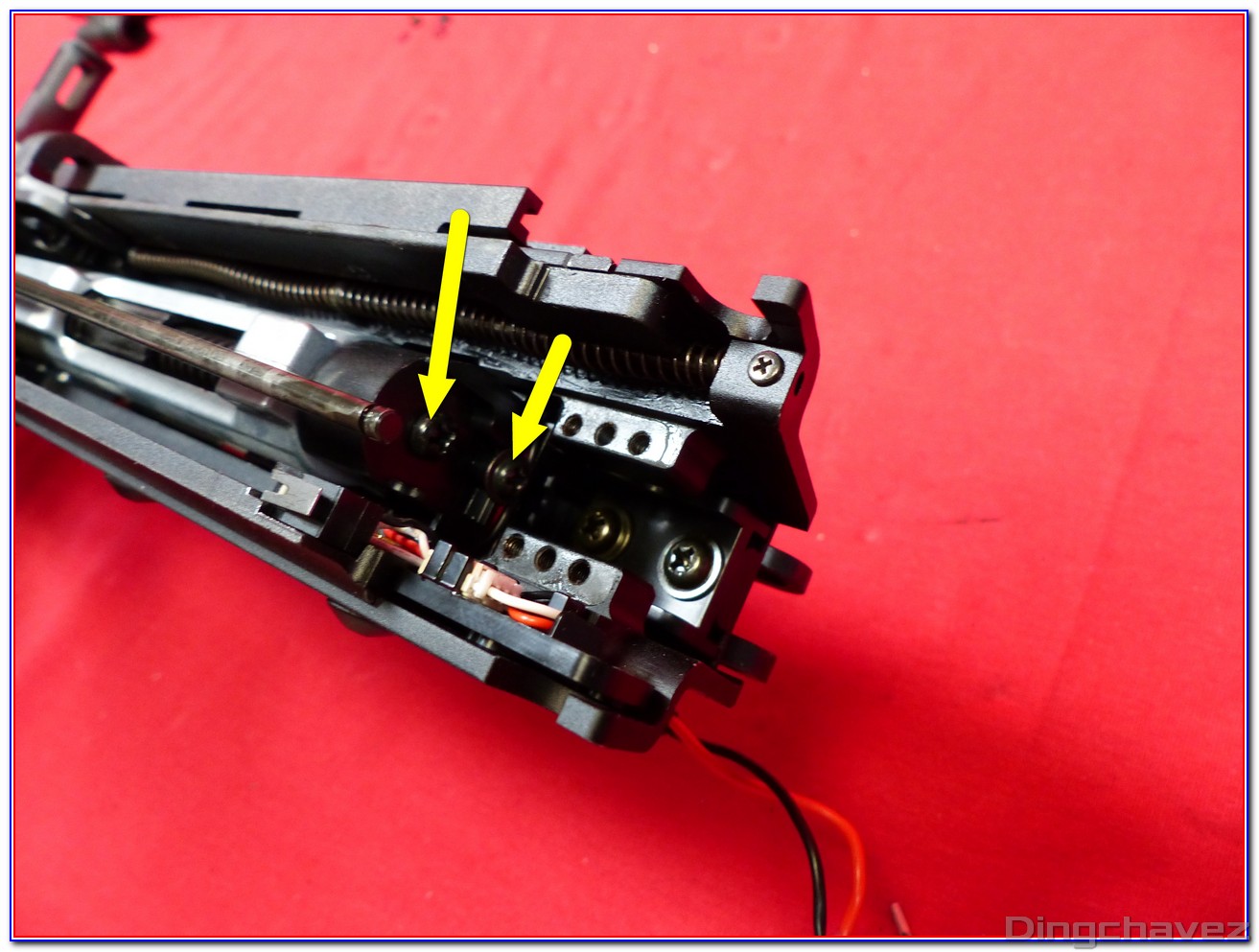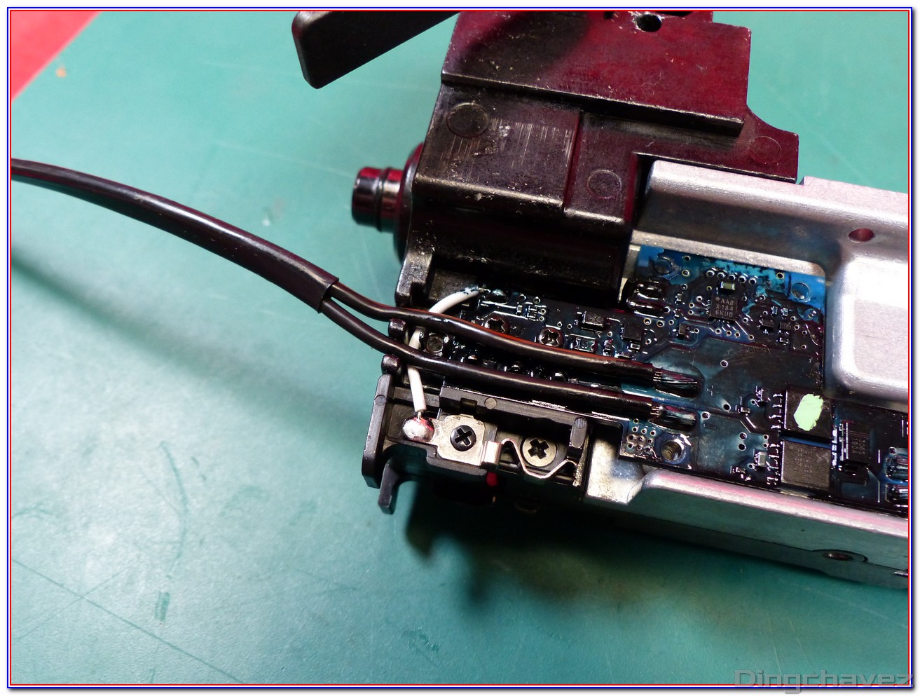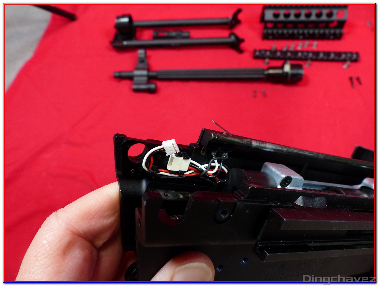 Et là, les deux contacts qui relient la queue de détente à la gearbox.