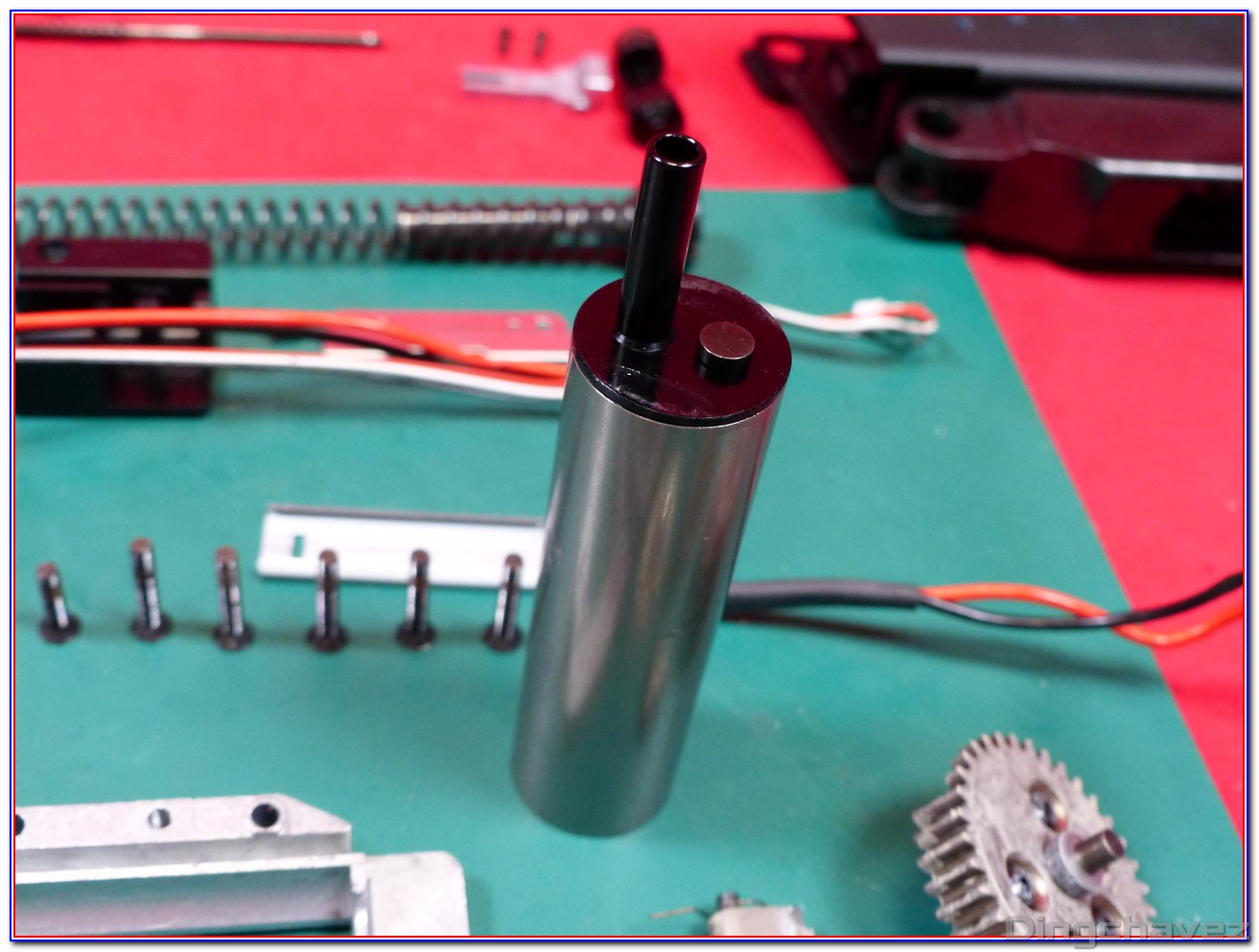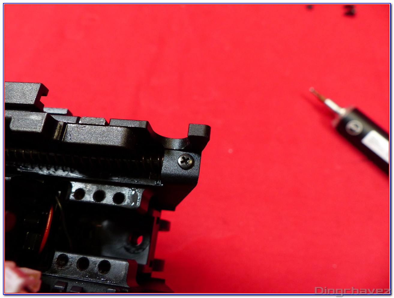 Le guide de ressort est vissé sur la gearbox. Otons-le.