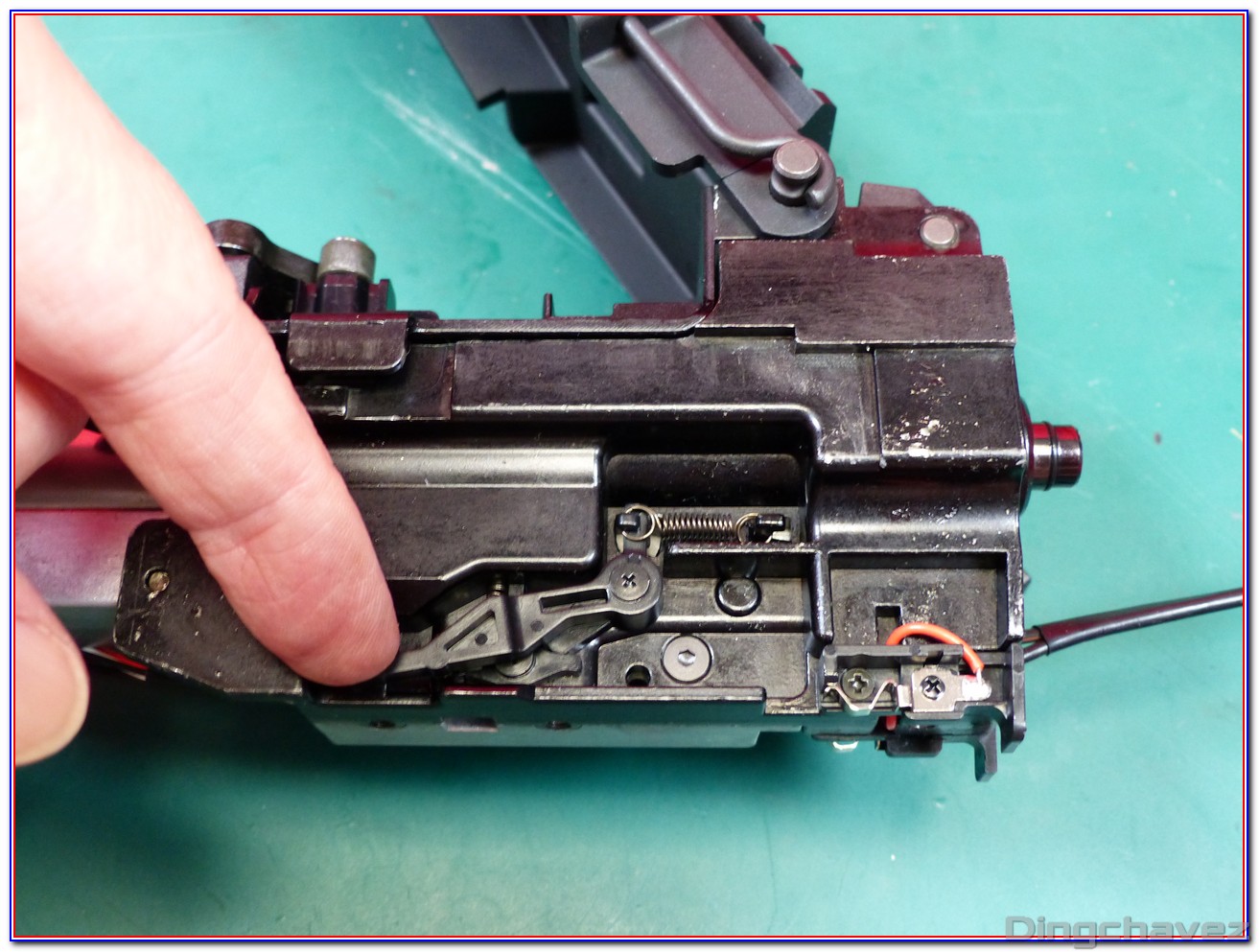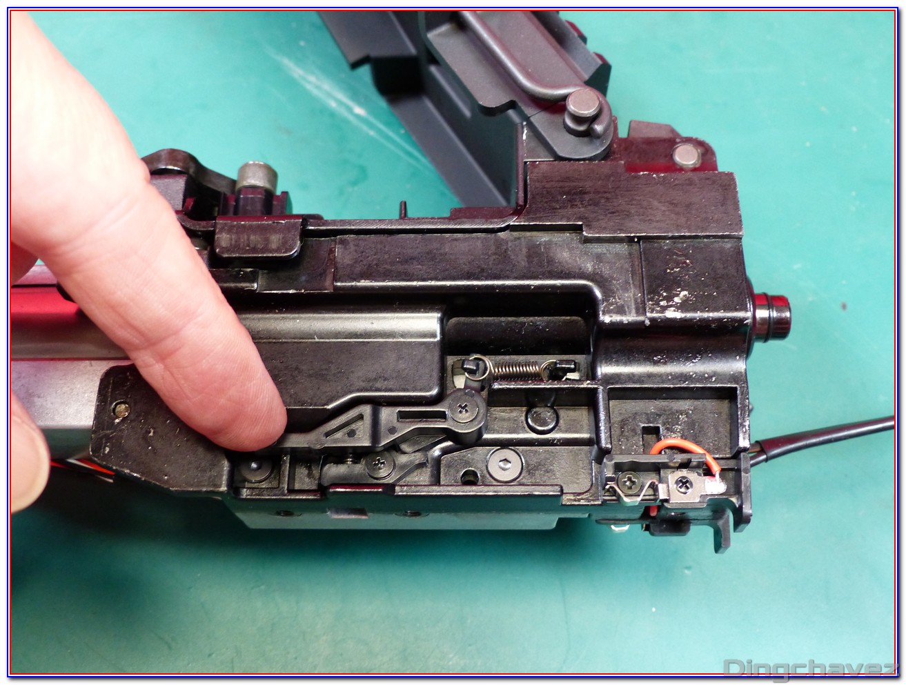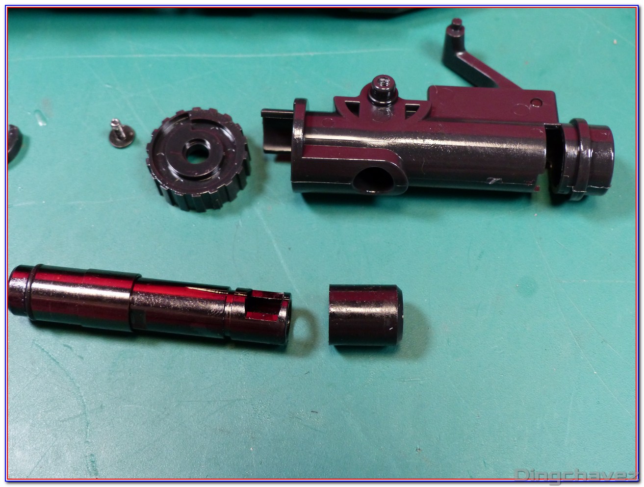 Puis j’ai démonté le levier de chargement. Cette opération n’est pas nécessaire pour sortir la gearbox de la réplique…