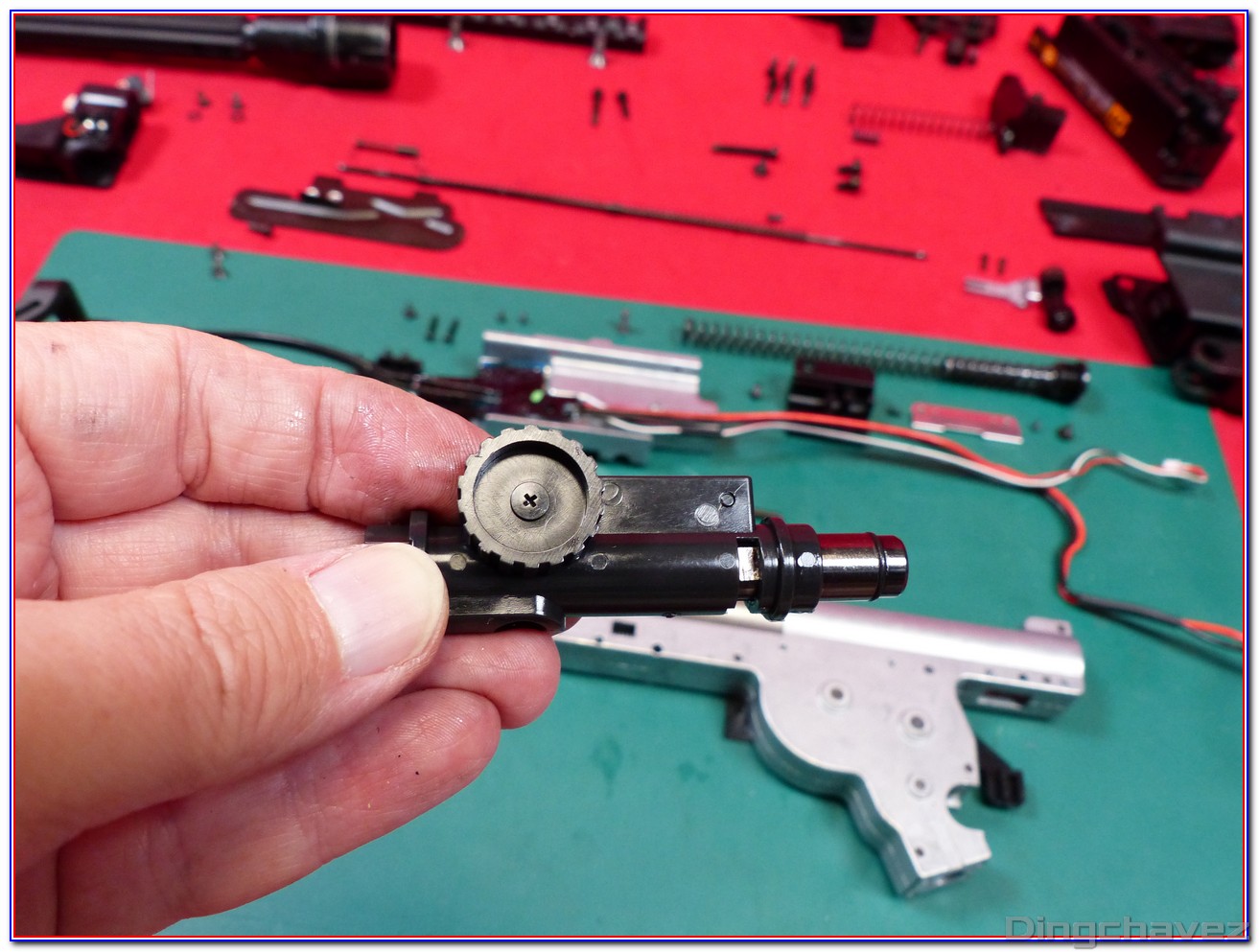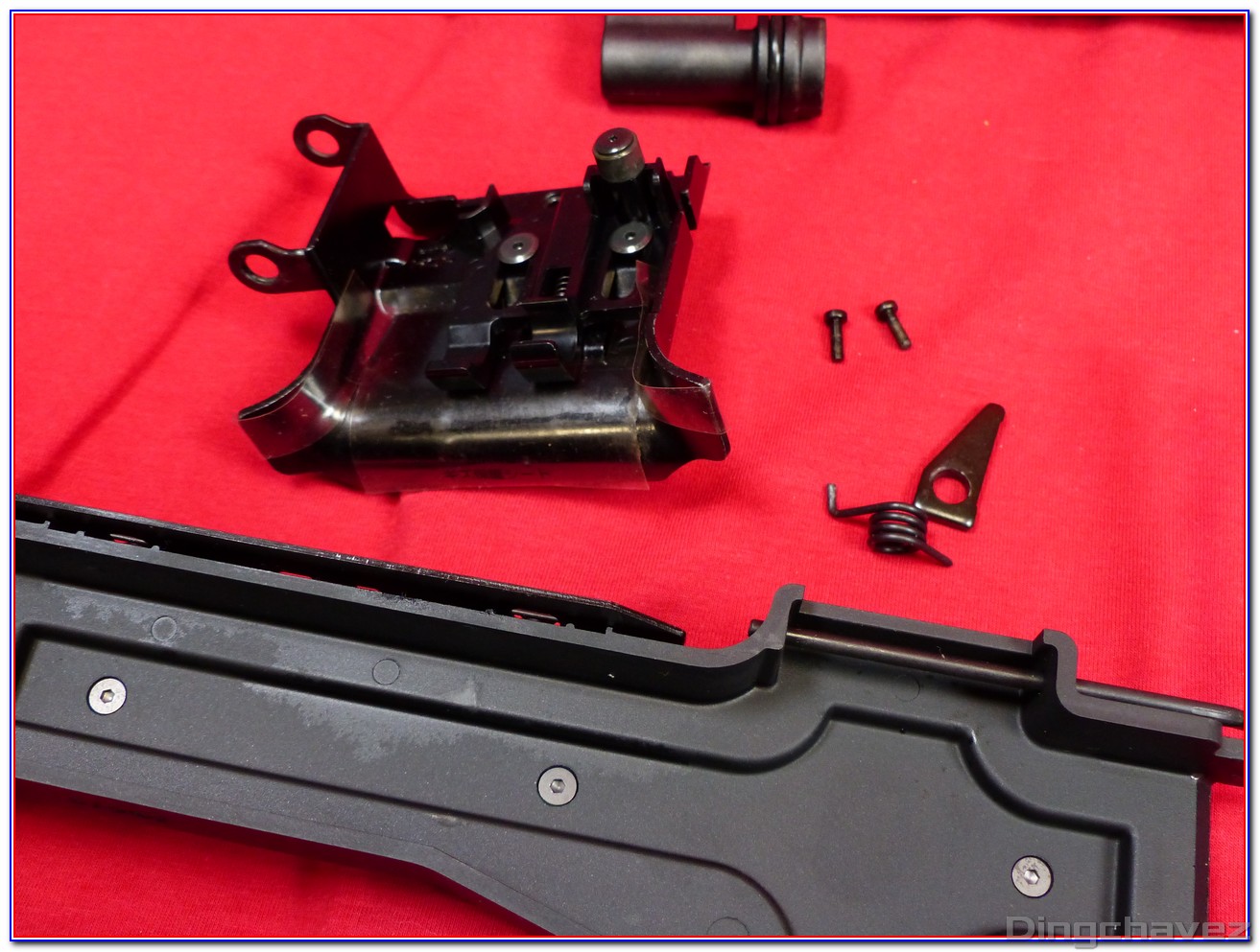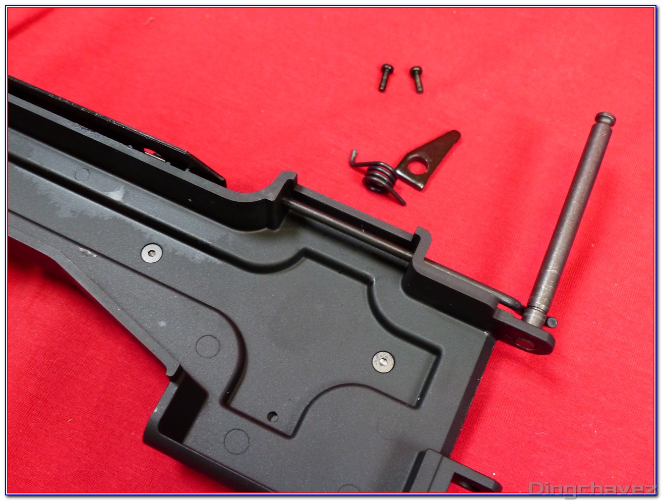 Puis j’ai démonté le levier de chargement. Cette opération n’est pas nécessaire pour sortir la gearbox de la réplique…
