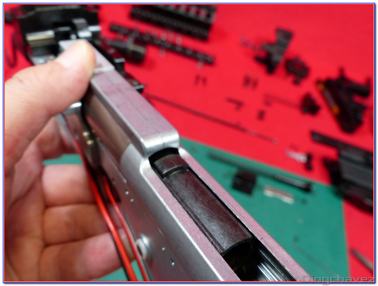 Marui a prévu une ouverture pour pouvoir remettre le ressort de tappet plate rapidement et sans peine.