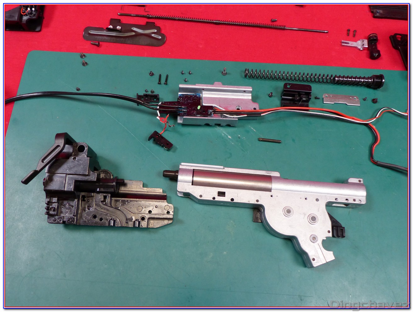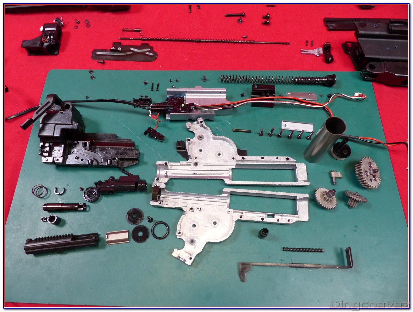 N’ayant jamais démonté ce type de réplique j’ai un peu tâtonné et FORCEMENT, une fois que j’ai eu terminé de remonter je suis tombé sur l’excellente vidéo (en Allemand sous-titré) de Reapers qui montre comment sortir la gearbox « rapidement » et efficacement…