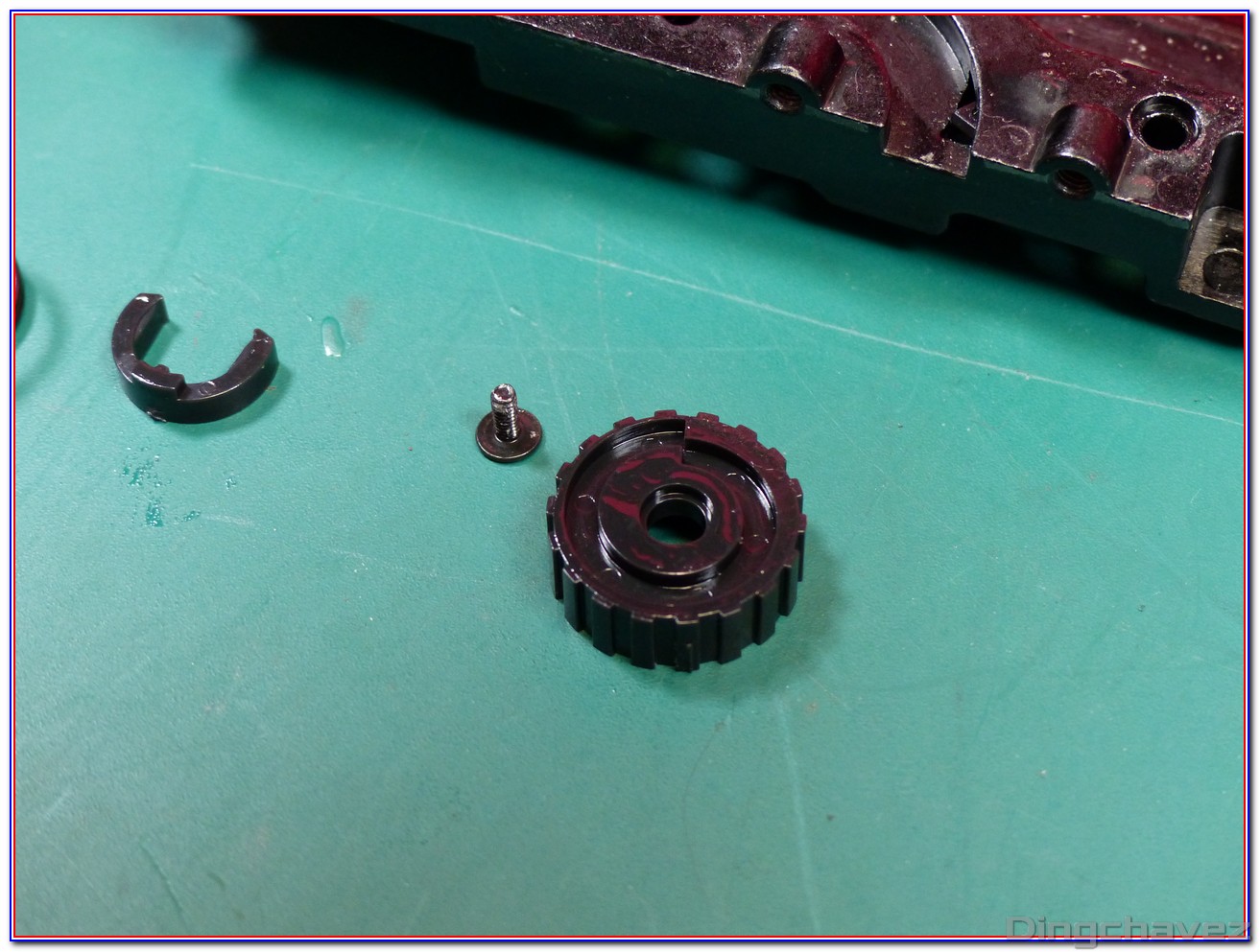 Habituellement situé au niveau du bevel gear, ici il vient bloquer le spur gear.