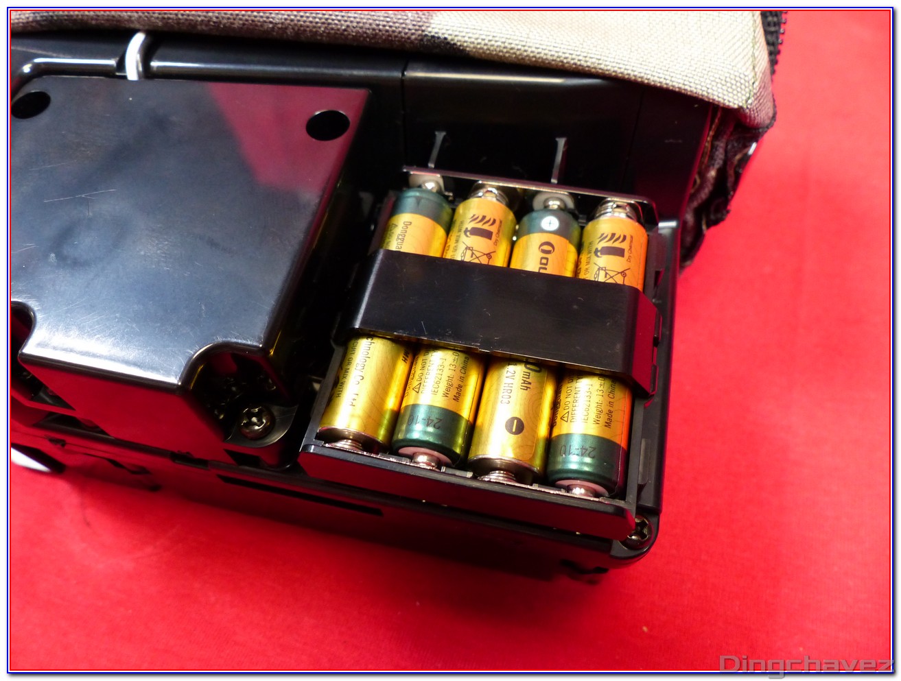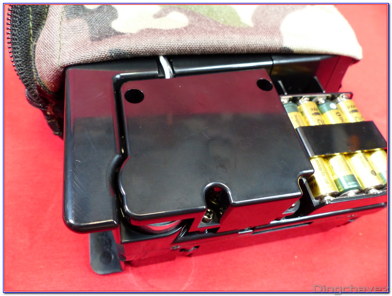 L’accès au compartiment à piles se fait en défaisant la fermeture éclair et en repoussant le tissus.