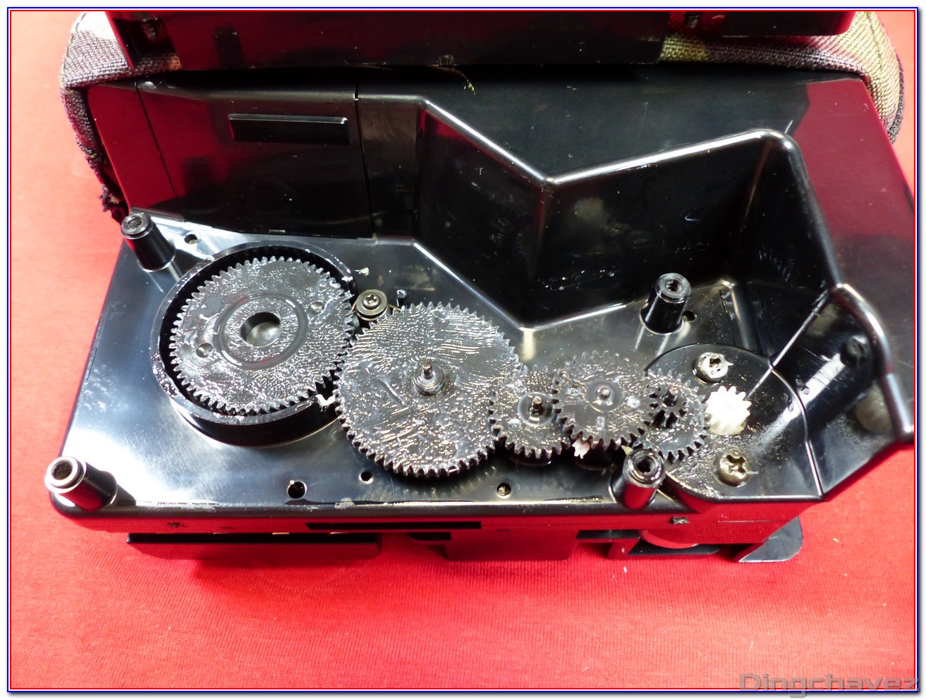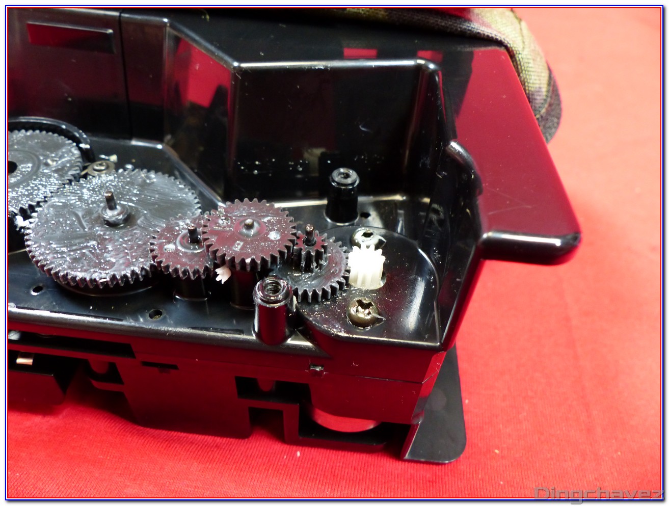 Le côté opposé abrite les engrenages. En cas de casse il suffit d’ouvrir et de remplacer l’engrenage défectueux… si vous en trouvez un de rechange…