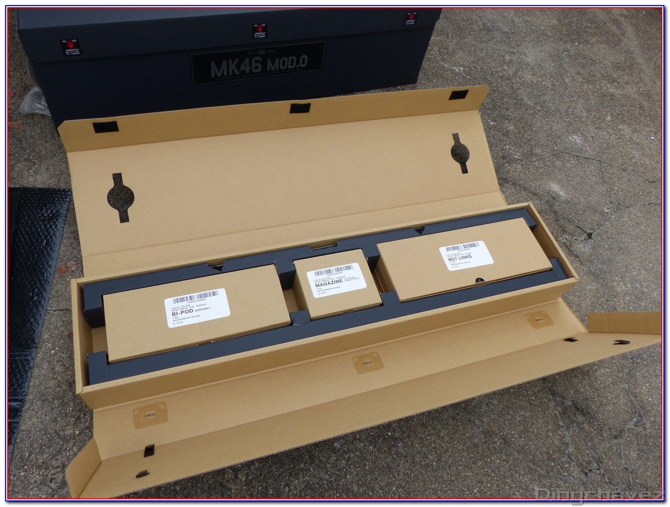 Le plus petit renferme d’autres boites (oui, je déballes des poupées russes !) contenant les accessoires : bipied, chainons et munitions, ammobox, tige de nettoyage…